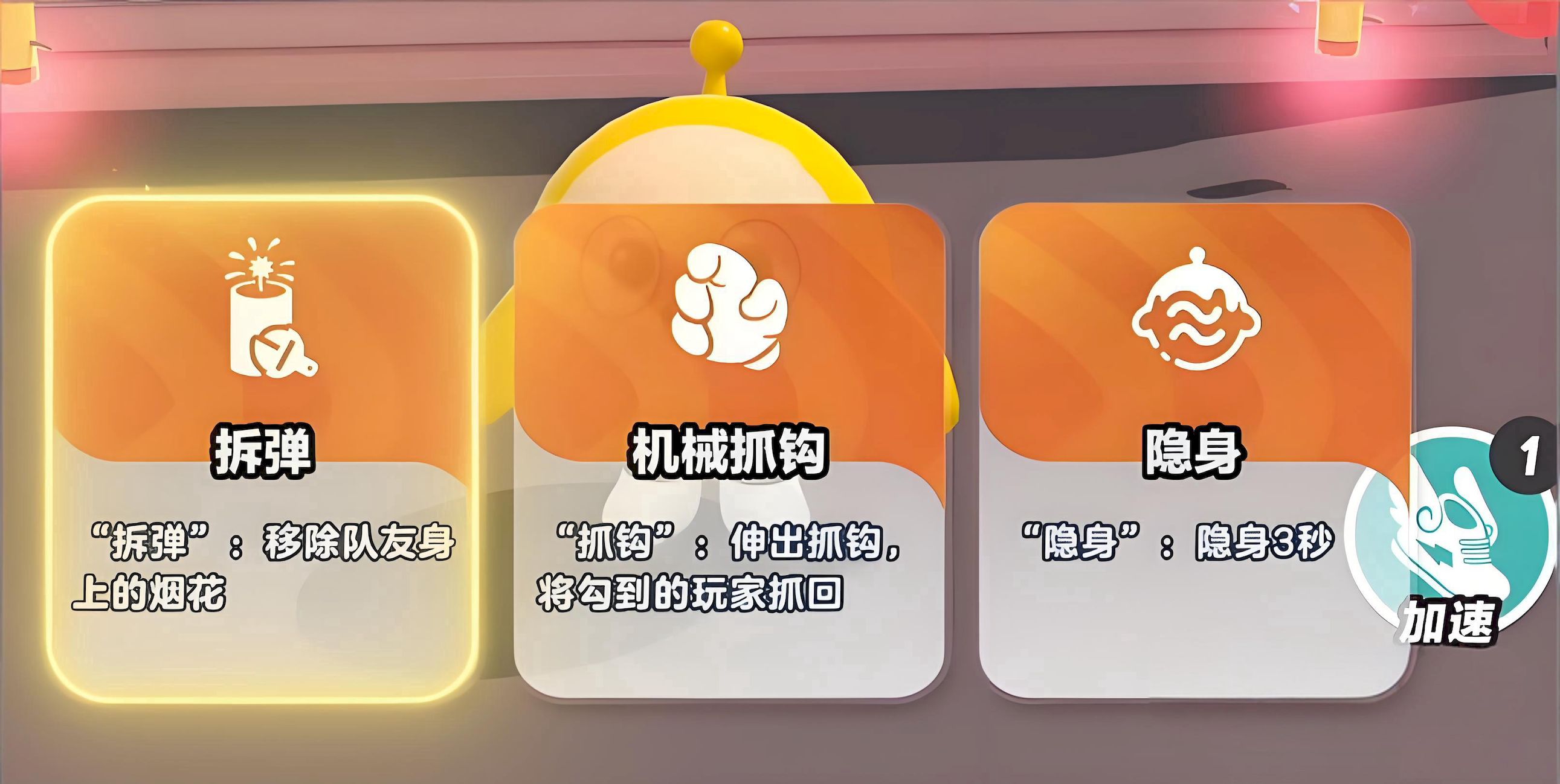 4、模式內有多種實用技能,隱身可隱藏身形三秒,拆彈能移除隊友身上煙花,抓鉤可將遠處玩家抓回。