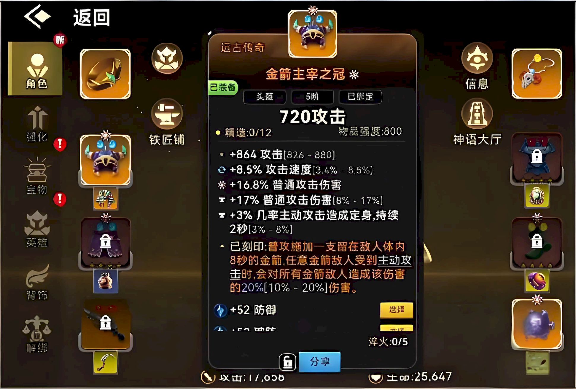 3、需對獵手玉扳指進行刻印,其刻印后可提升20%普攻攻速與9%普攻傷害,還能讓普攻施加金箭觸發額外群體傷害。