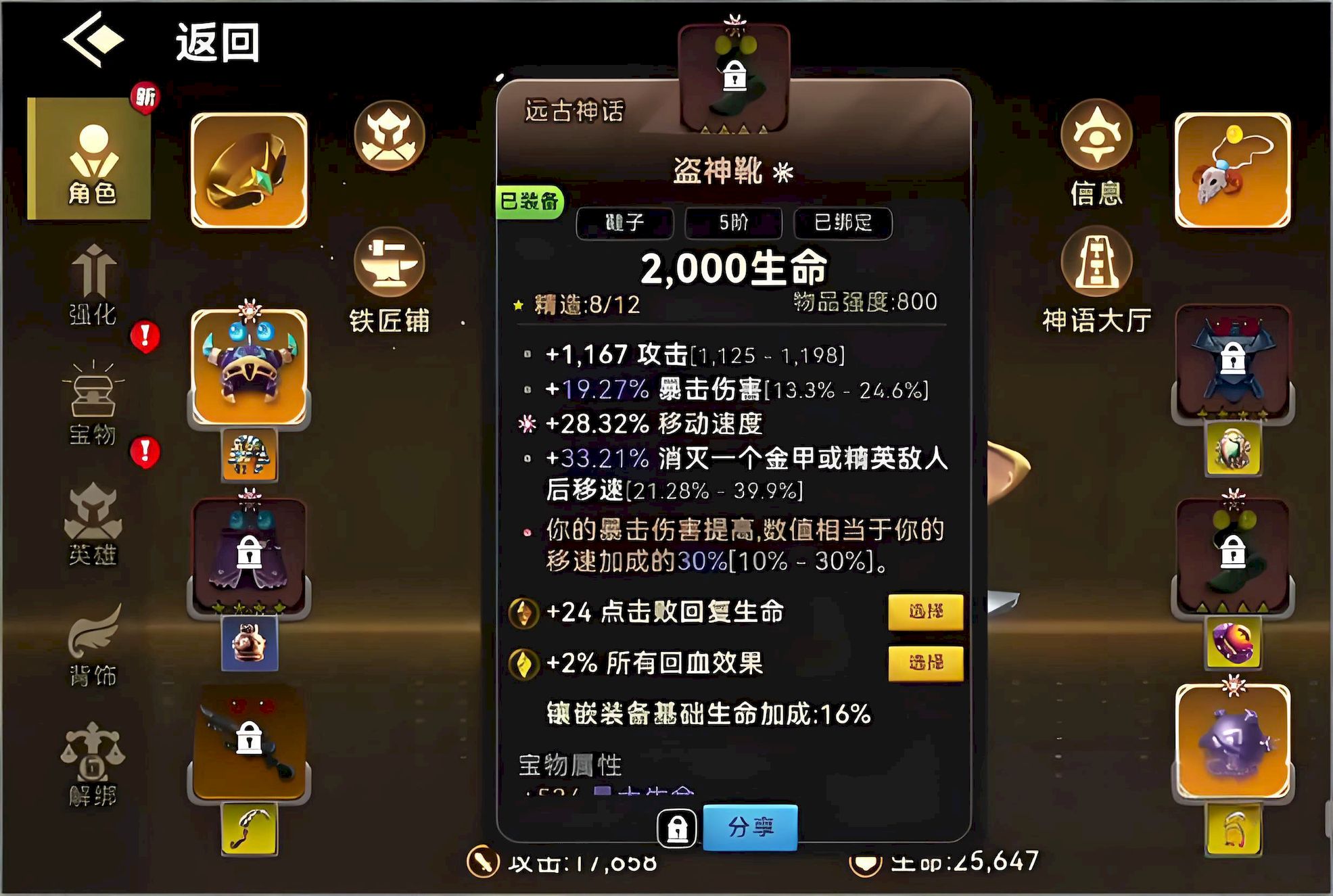 2、弓箭流武器適合選戰士神力弓,其群傷效果可達190%,搭配高額攻擊且附28%移速的盜神鞋,能搭建該流派基礎框架。