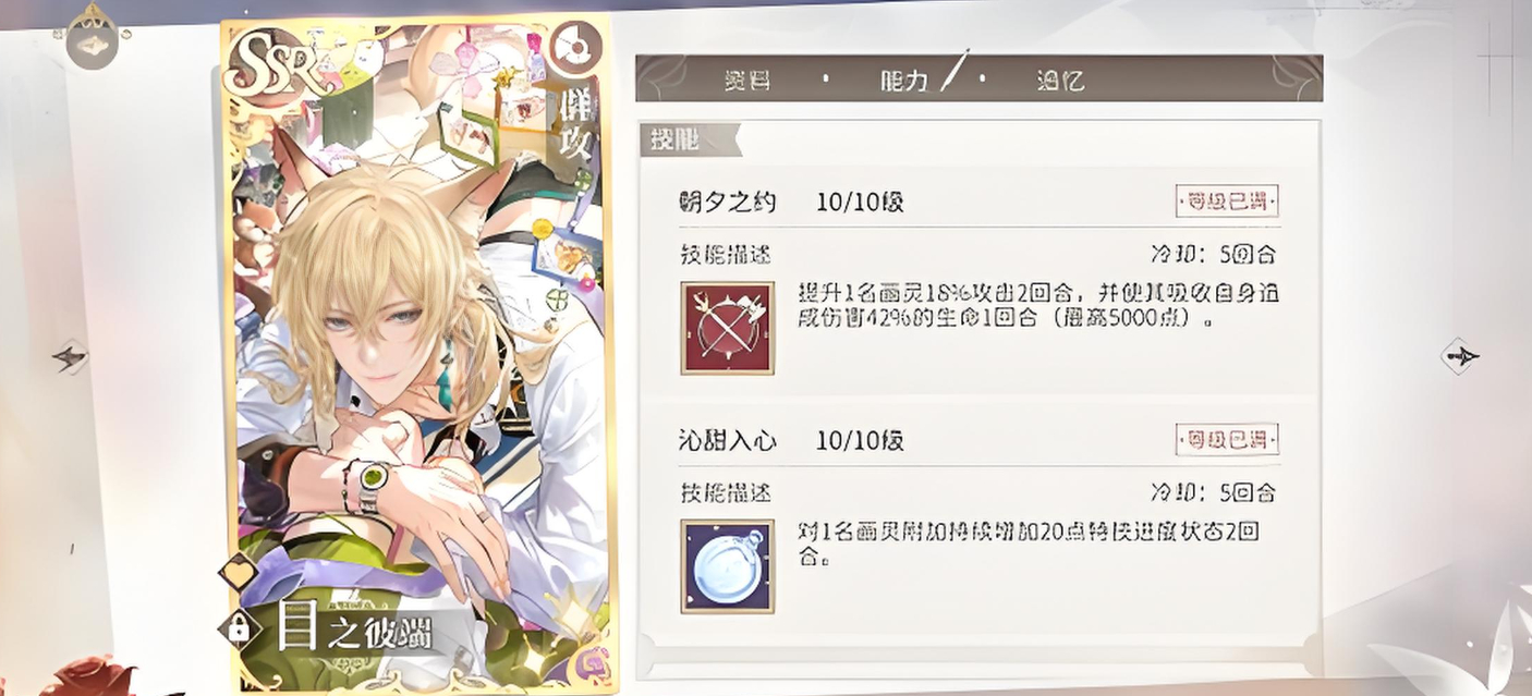 2、一技能可提升畫靈攻擊并使其吸血,有保人能力適配部分場景,應對采風怪物效果則相對有限。