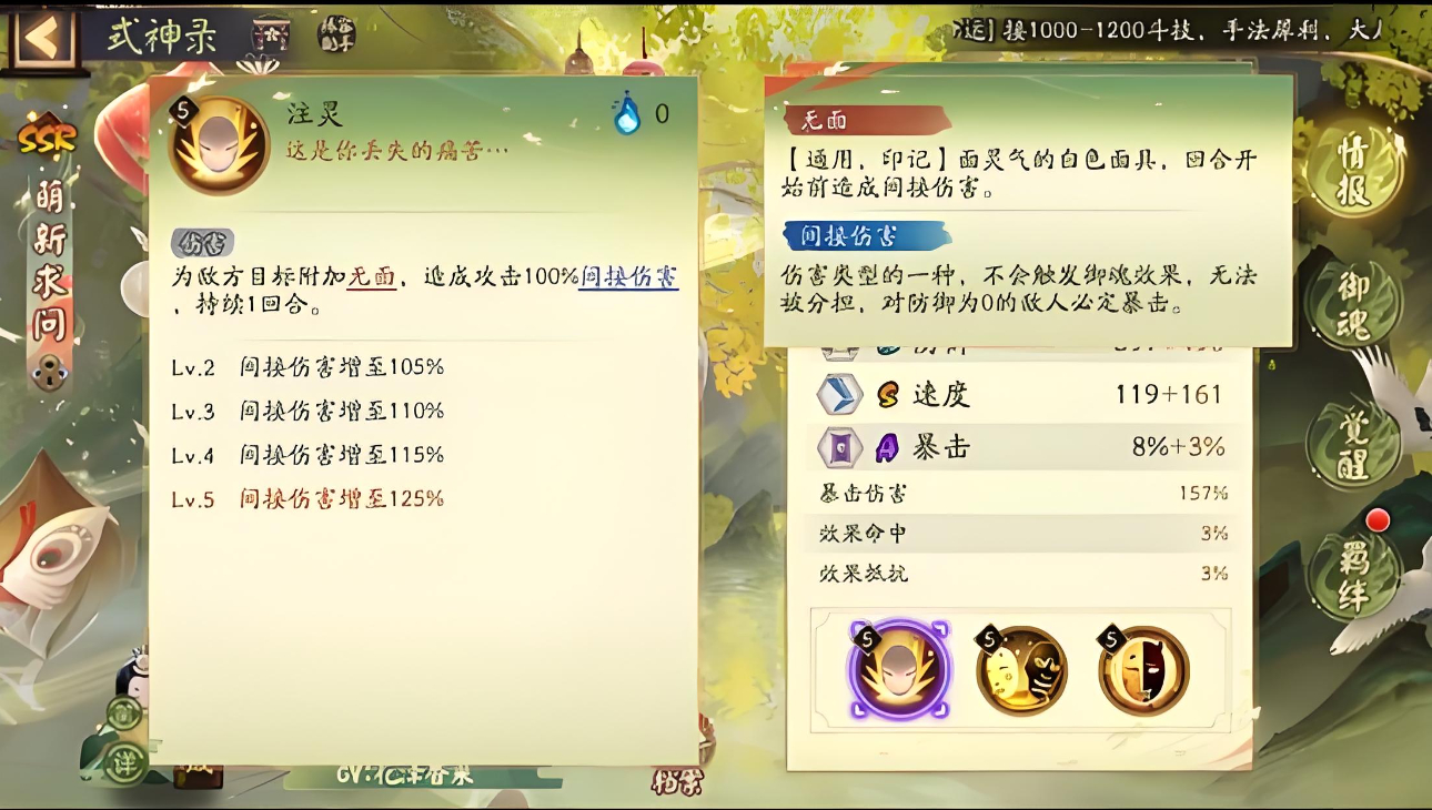 3、無面會在回合前造成間接傷害,善面提升友方抗性減傷,惡面能讓自身提升速度與造成的傷害。