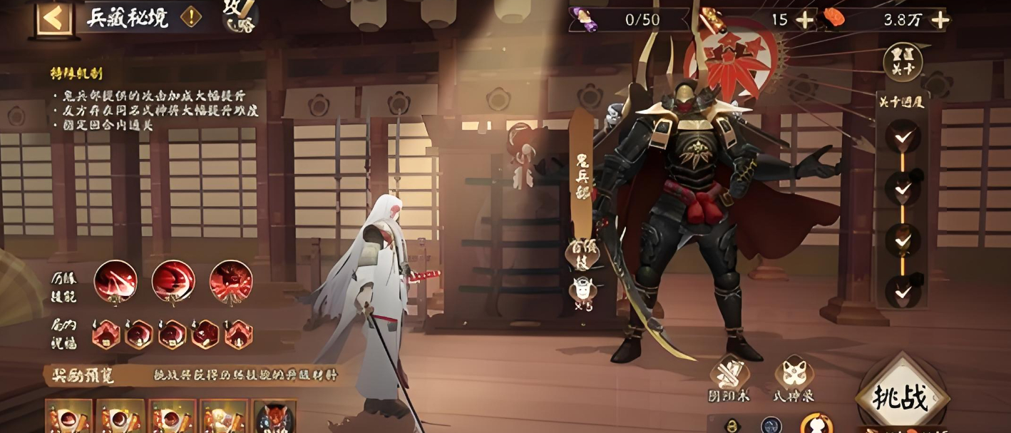 2、歷練技能需攜帶天下布武和鬼神之策,局內祝福按順序選天下布武絕命,劍之壘乘勝,天下布武血怒,鬼胄追擊和鬼胄誘敵。