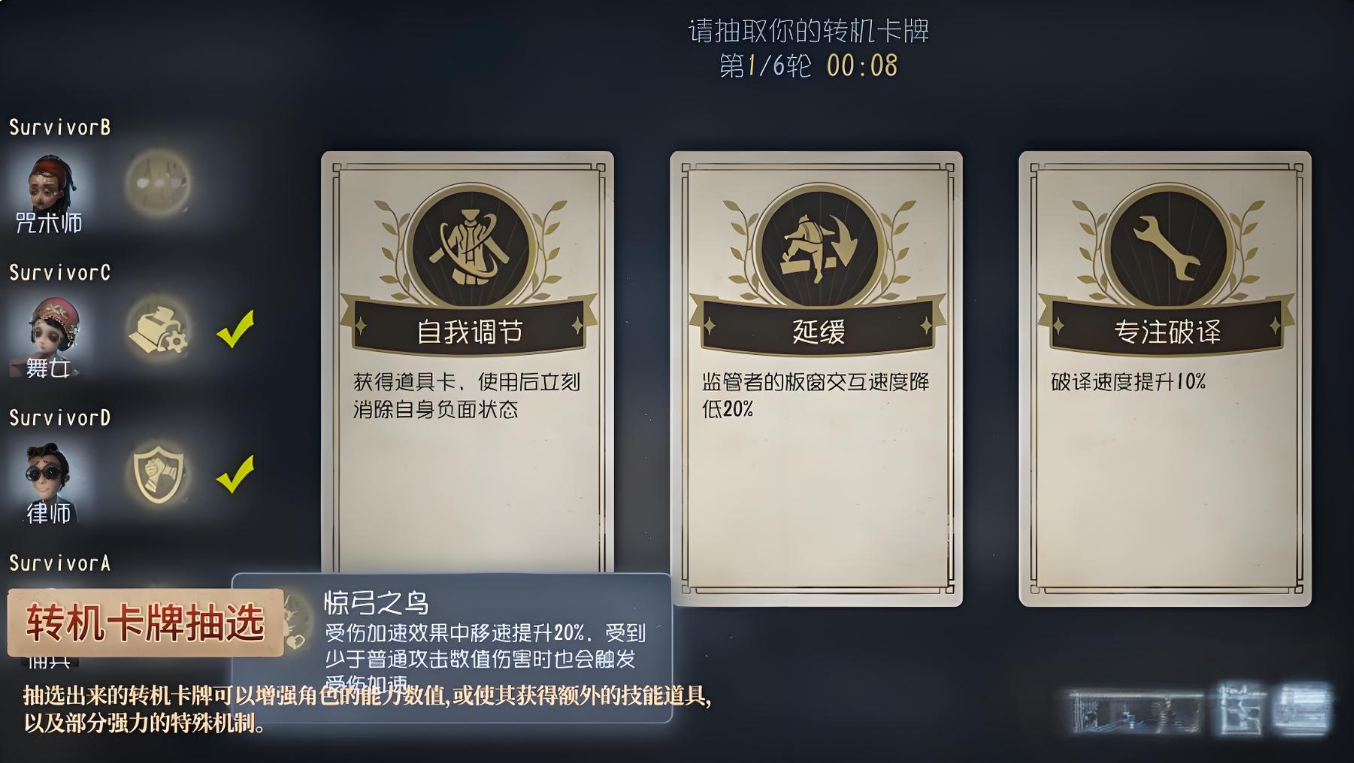 2、抽選在戰前準備求生者上椅被淘汰大門開啟等節點觸發,無節點時60秒倒計時保底觸發。