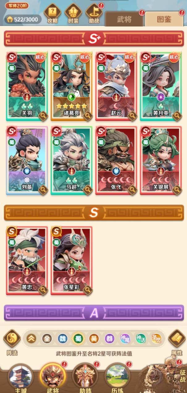 1、核心陣容包含關羽趙云諸葛亮黃月英張飛劉備,六位蜀漢名將各司其職,構成完整戰術體系且協同緊密。