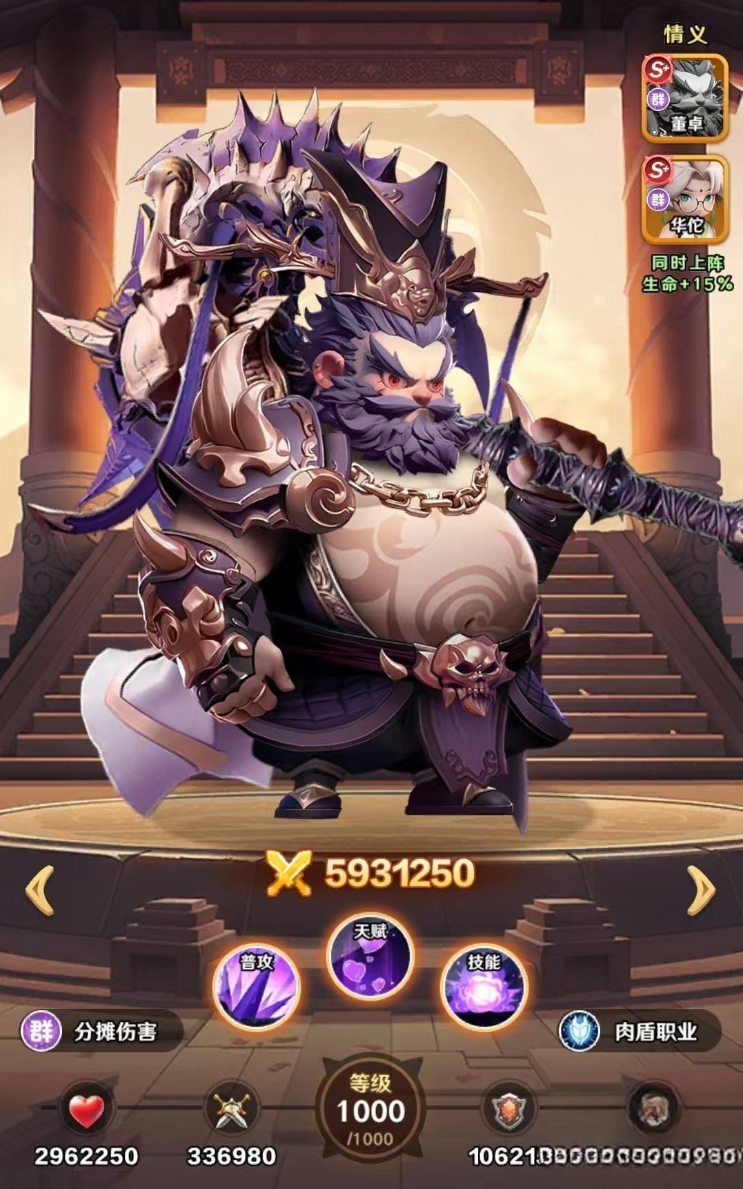 5、陣容分工明確協同高效,董卓當肉盾護后排,呂玲綺祝融施減益,袁紹疊傷害放大控制優勢。