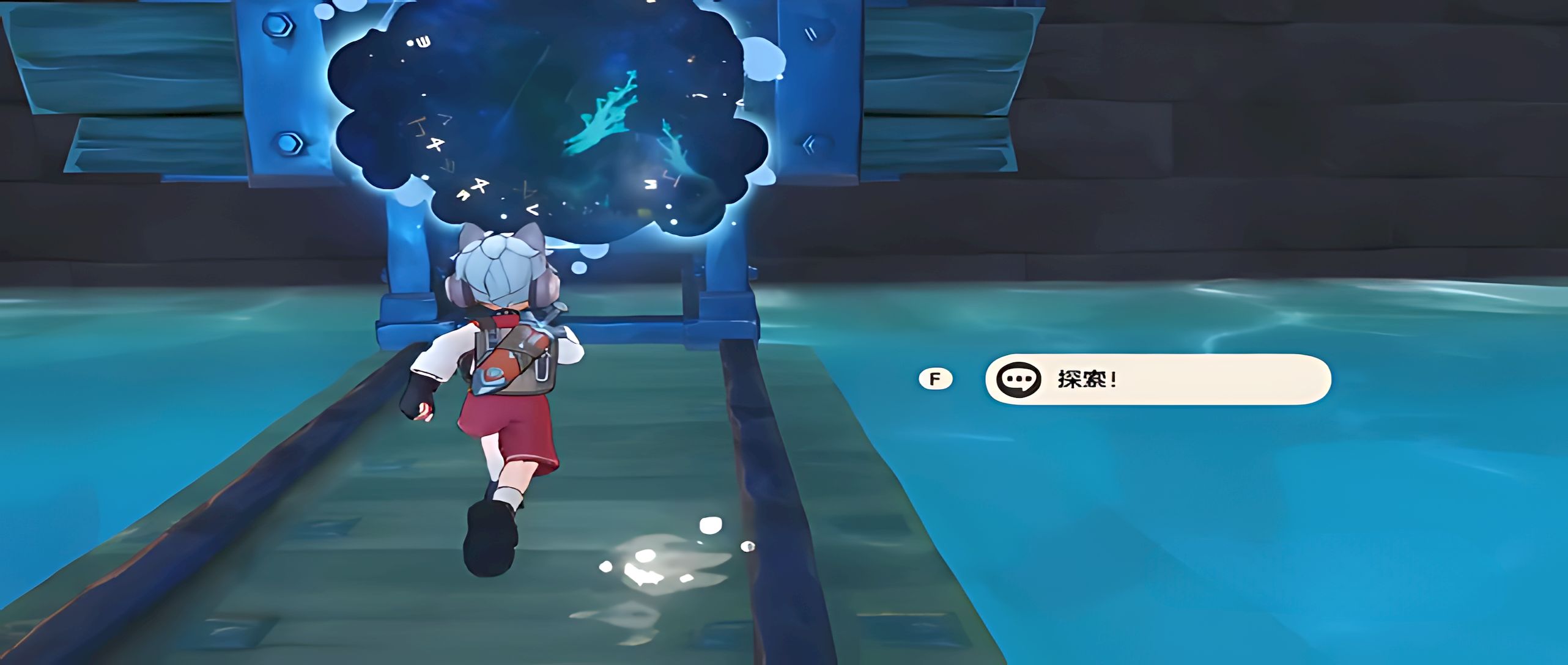 3、獲取首蛋后繼續向右游動至盡頭,通過互動觸發傳送功能,傳送后前行找到奇怪物體對話探索得二蛋。