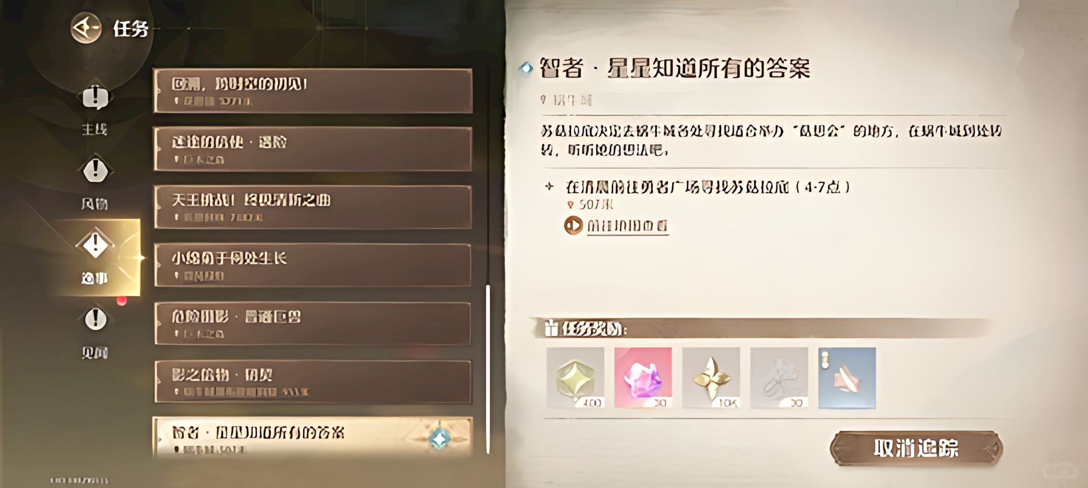 3、把握特定時間找角色需在清晨4至7點時段,前往勇者廣場尋找蘇菇拉底,聽取其想法以推進任務進度。
