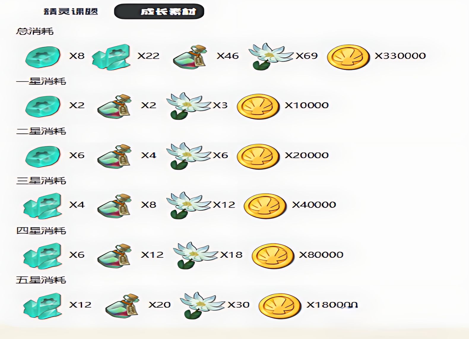 4、進化需集齊四類材料,分別是機械系靈碎8個機械系靈石22個魔法粉塵46個天使草69個可日常收集。