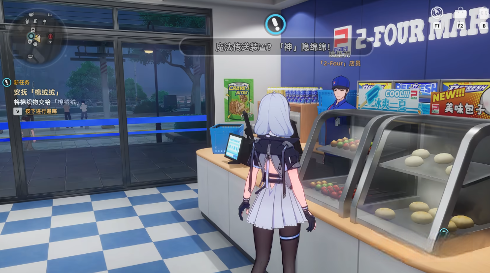 1、首要步驟是前往便利店與埃里克進行對話,溝通結束后承接魔法傳送裝置任務,解鎖尋找棉絨絨的權限。