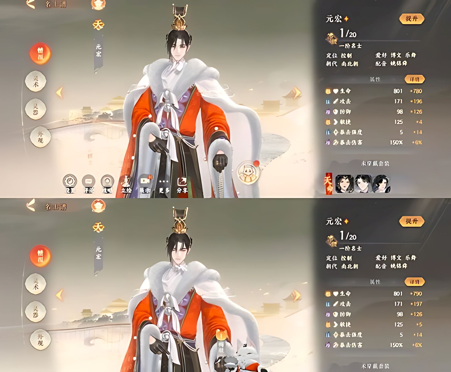 1、定位與基礎屬性清晰,身為控制類名士,基礎涵蓋生命攻擊防御敏捷等屬性,暴擊強度與暴擊傷害固定,敏捷需重點強化。