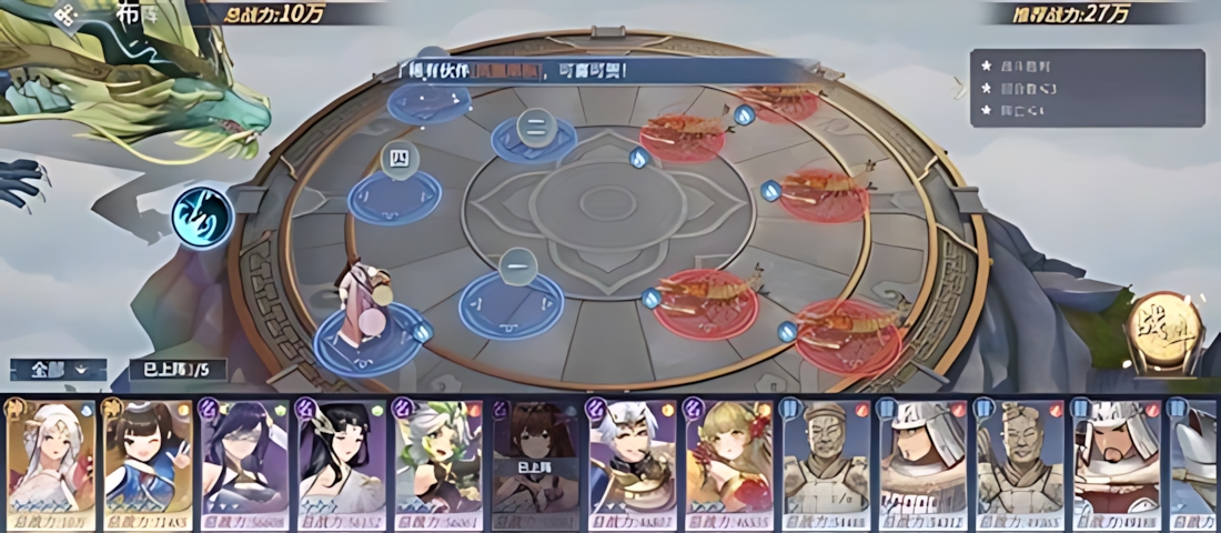 4、推圖流陣容均衡實用,以洛陽為主輸出,搭配潮州治療青龍坦克揚州輔助,揚州提升全隊攻速與暴擊率,兼顧續航與爆發適用于主線資源副本。