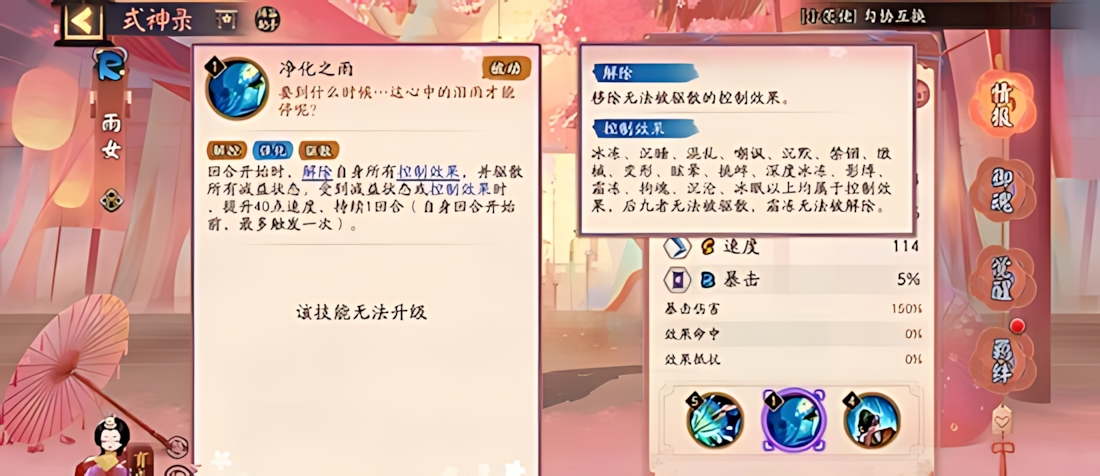 陰陽師雨女是側重解控與驅散的輔助式神,技能設計圍繞解除控制、驅散增減益展開,在應對敵方控制型式神時作用關鍵。許多使用者對其技能效果、等級強化收益及實用搭配了解不足,難以充分發揮其團隊價值。本文將詳細拆解技能細節、強化要點與應用場景,幫助大家全面掌握該式神用法,應對各類戰局挑戰。