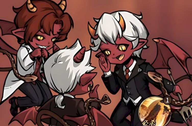 2、小惡魔常規抽取可得,作為前排承傷角色擁有瀕死復活機制,復活后為全體友方提升攻擊力,兼具坦度與輸出能削減敵方前排血線。