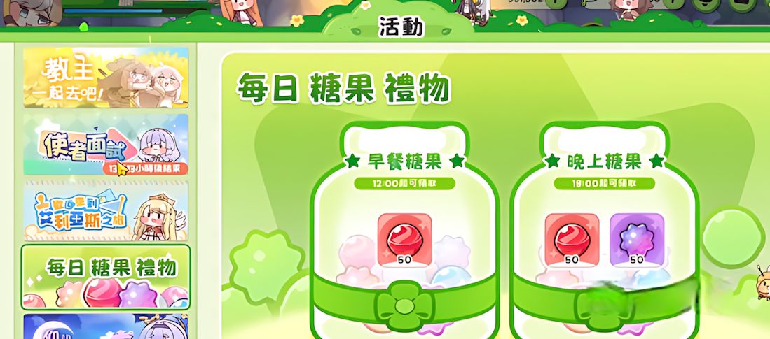 1、每日有兩個固定領取節點,中午12點可領50顆早餐糖果,晚間18點可領50顆基礎加50顆限定晚點糖果,登錄即自動到賬。
