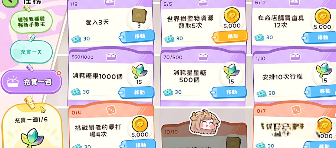 2、任務系統是核心增長引擎,優先完成商店購道具安排行程等低耗高回報任務,單次可獲5000顆糖果及30個輔助道具。