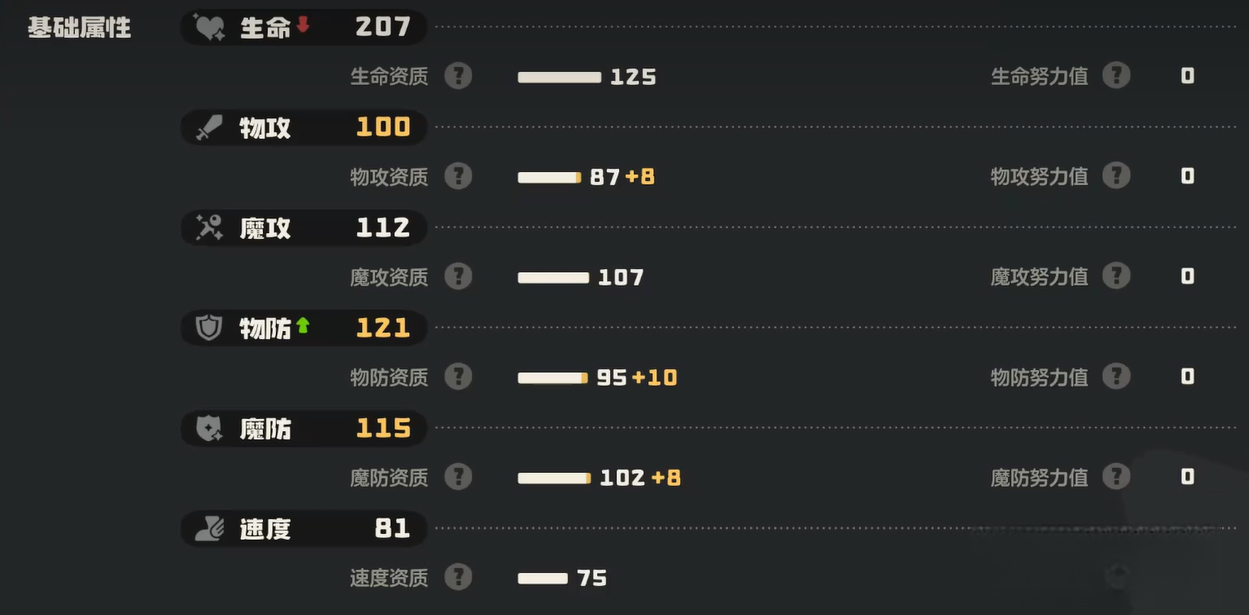 3、屬性加點側重生命值與防御,最大化承傷能力,少量補充速度保障先手防護,魔法攻擊屬性無需分配點數。