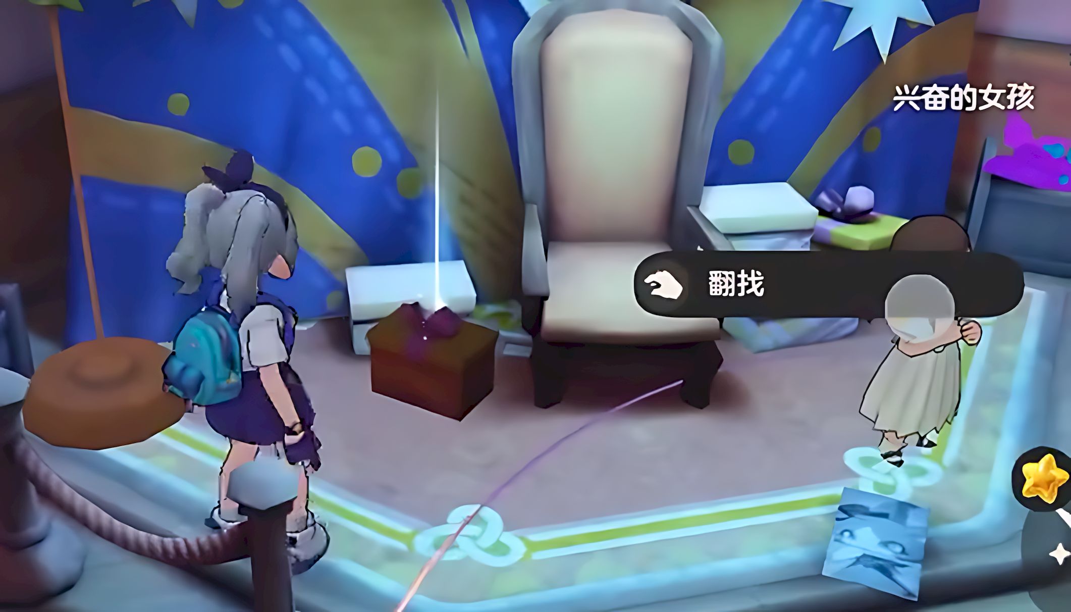 3、前往地圖中有椅子的位置點擊翻找,獲取眠梟之星道具,該道具關乎后續進程務必妥善留存。
