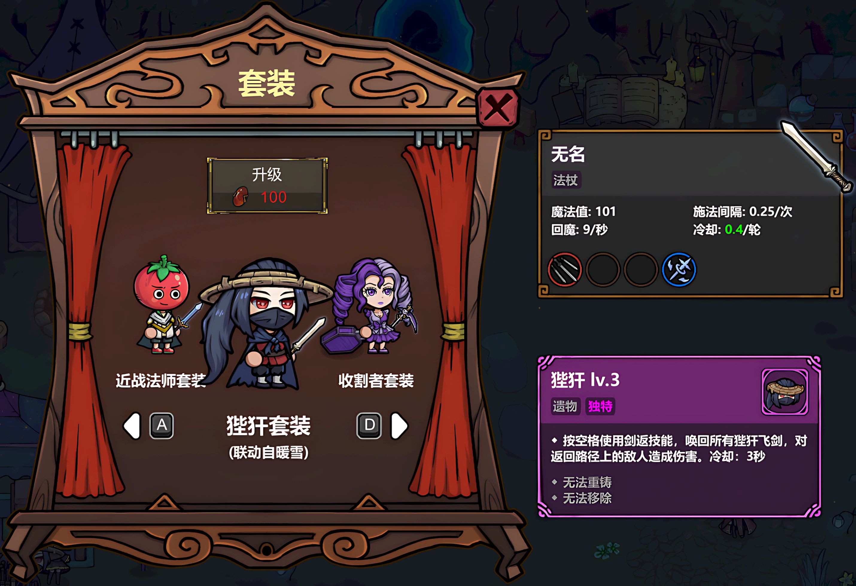 1、解鎖需使用審判之劍擊敗任意Boss,解鎖后獲得無名法杖狴犴被動審判之劍飛彈及獨特遺物,主動技能劍返可喚回飛劍造成路徑傷害。