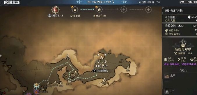 4、抵達那不勒斯港后前往城東北部莊園,首次探訪僅觸發線索提示,需指派魅力值不低于40的船員遞交約定信函,否則無法激活下一階段劇情。