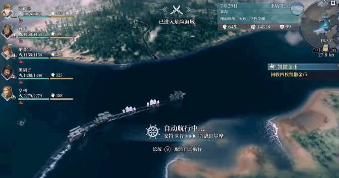 2、第三枚金幣需從馬德拉群島向西航行固定距離,發現沉船殘骸后靠近拾取,表面已受海水長期腐蝕,第四枚需抵達斯德哥爾摩西南區域觸發忠犬事件。