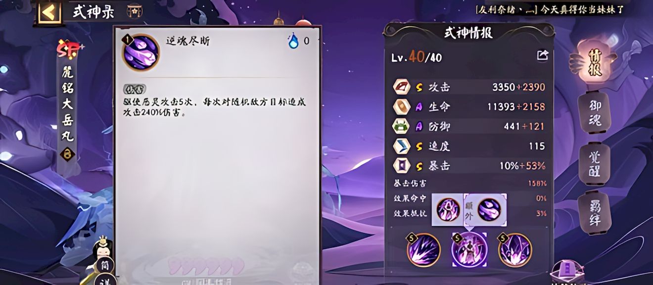 5、御魂搭配方向明確,斗技場常用傷魂鳥或雪幽魂,適配其形態切換與印記機制,進一步放大控場、生存與輸出的綜合戰斗能力。