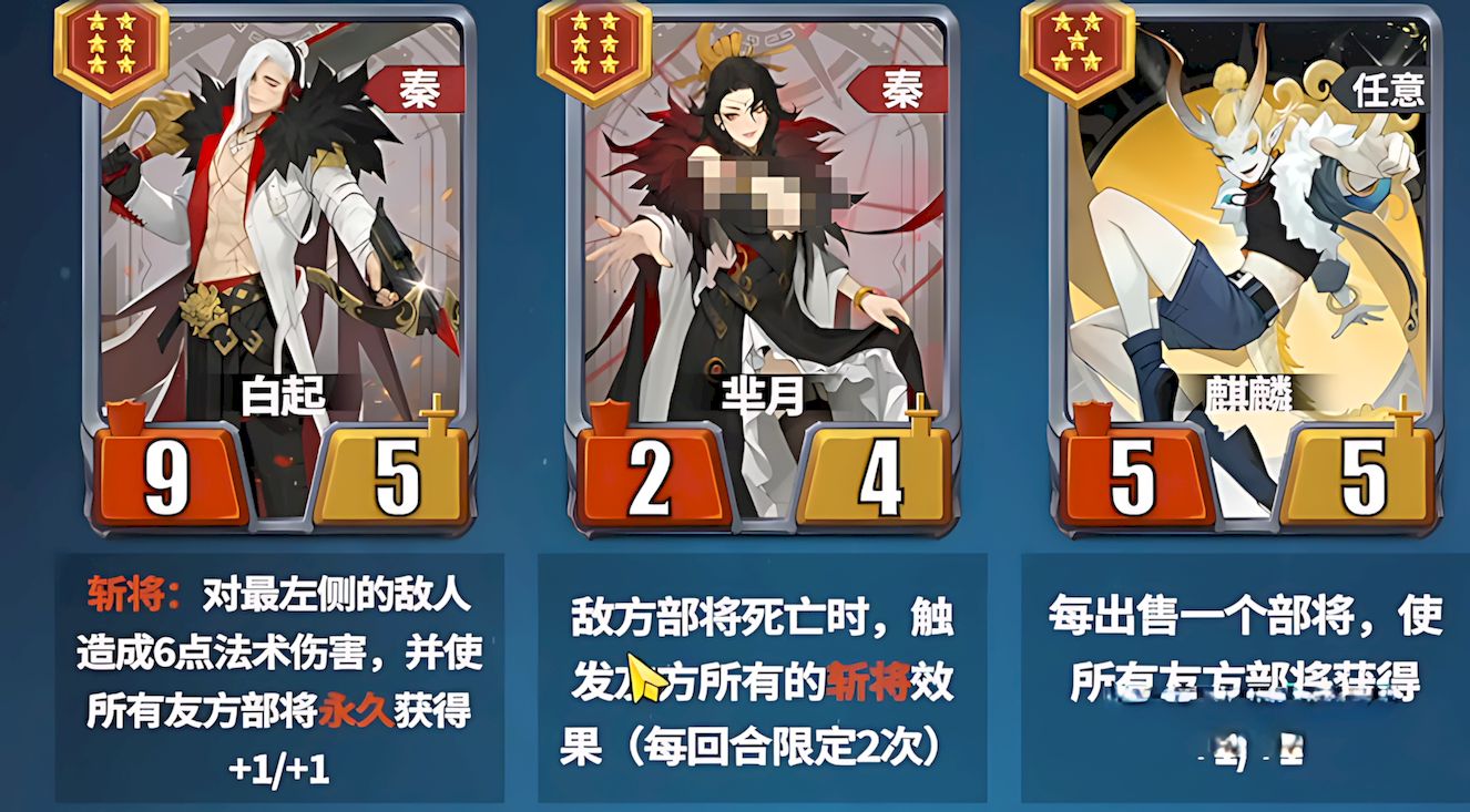 4、陣營特性高度適配,秦陣營角色設計思路圍繞斬將展開,該流派是目前秦陣營最強玩法,前期不弱勢且中后期戰力突出。