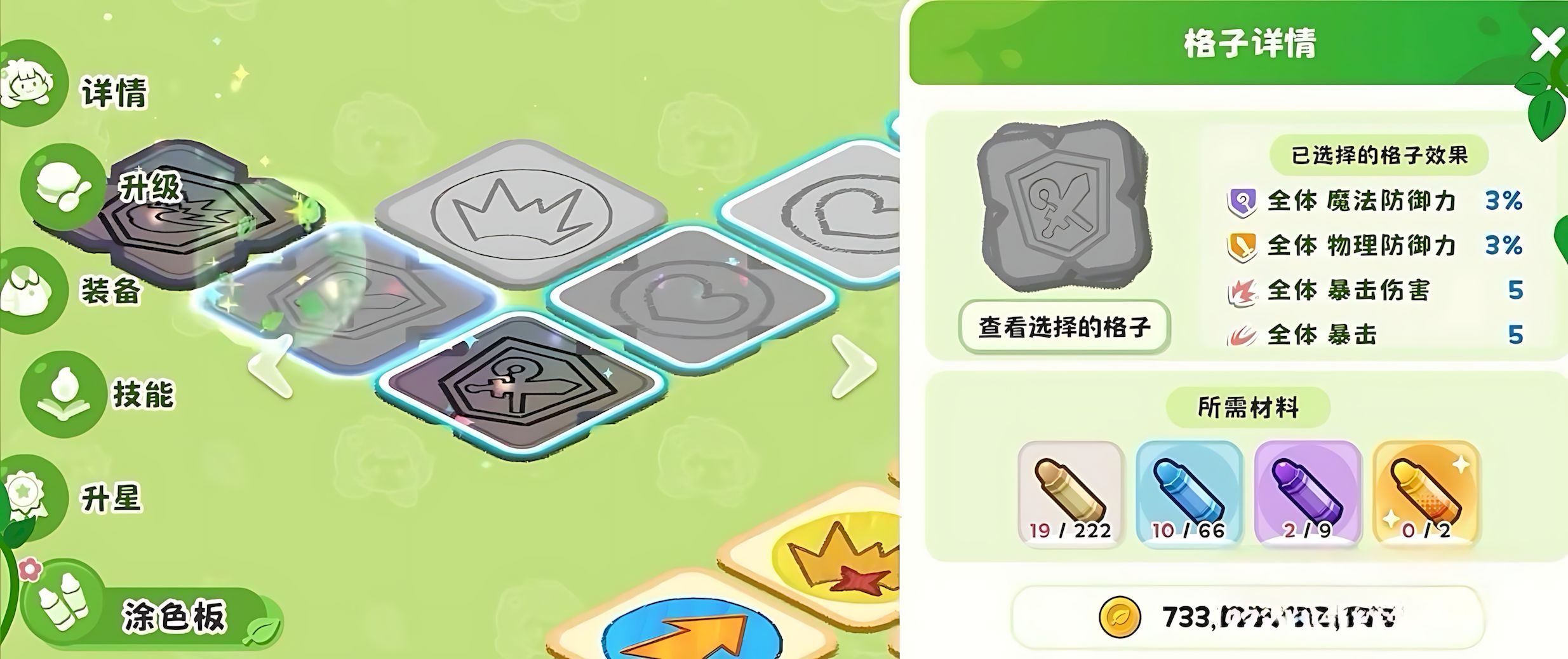 5、培養方向明確具體,建議直通前行之路坨三格子成為純色隊伍主力支撐,不建議開啟我心中的燈塔坨二格子,其易傷帶來的效益較低。
