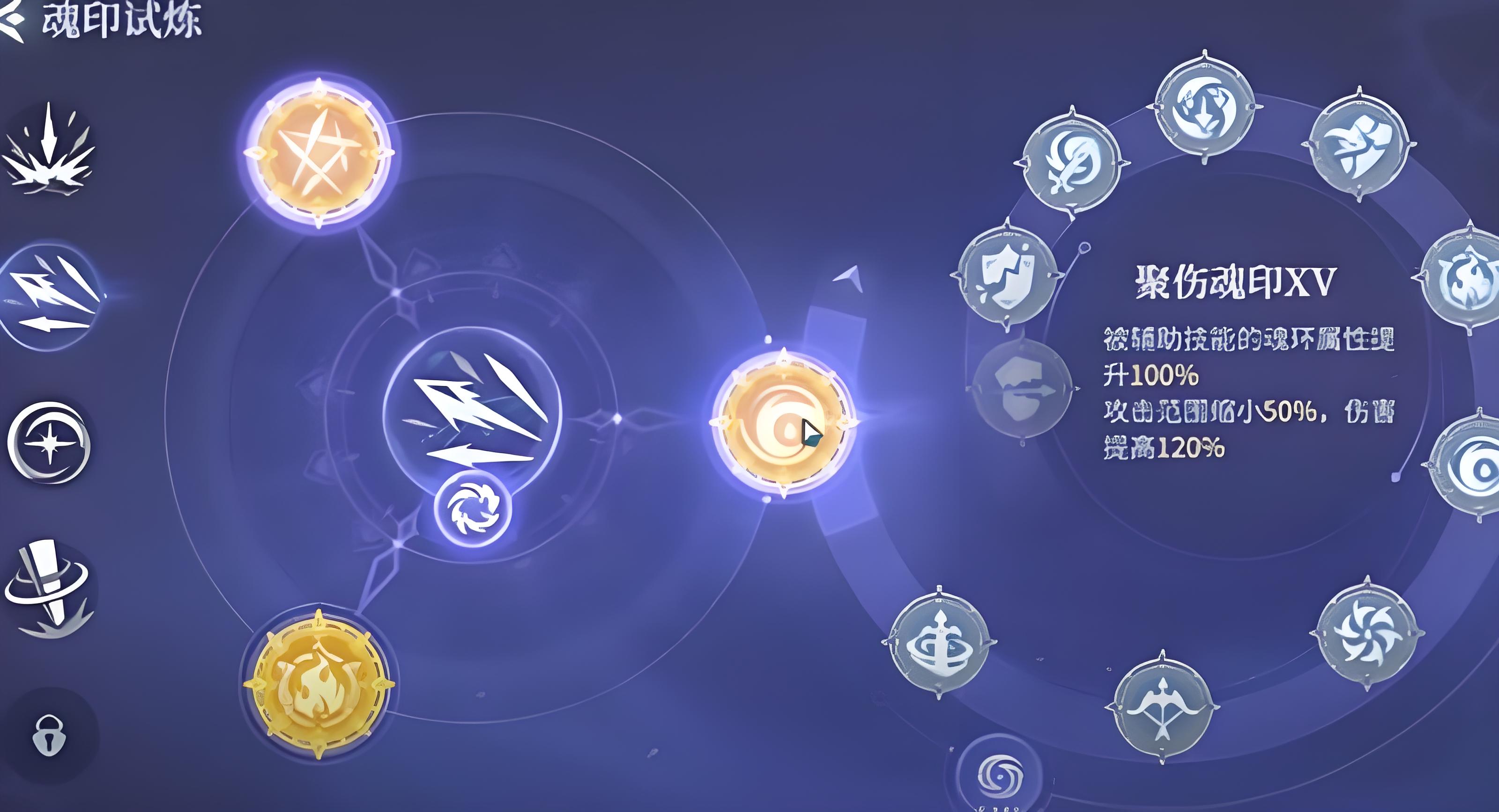 3、魂印試煉系統可強化它,試煉后攻擊范圍擴100%且額外提5%傷害,建議50級后開啟試煉,保障資源投入合理收益高。