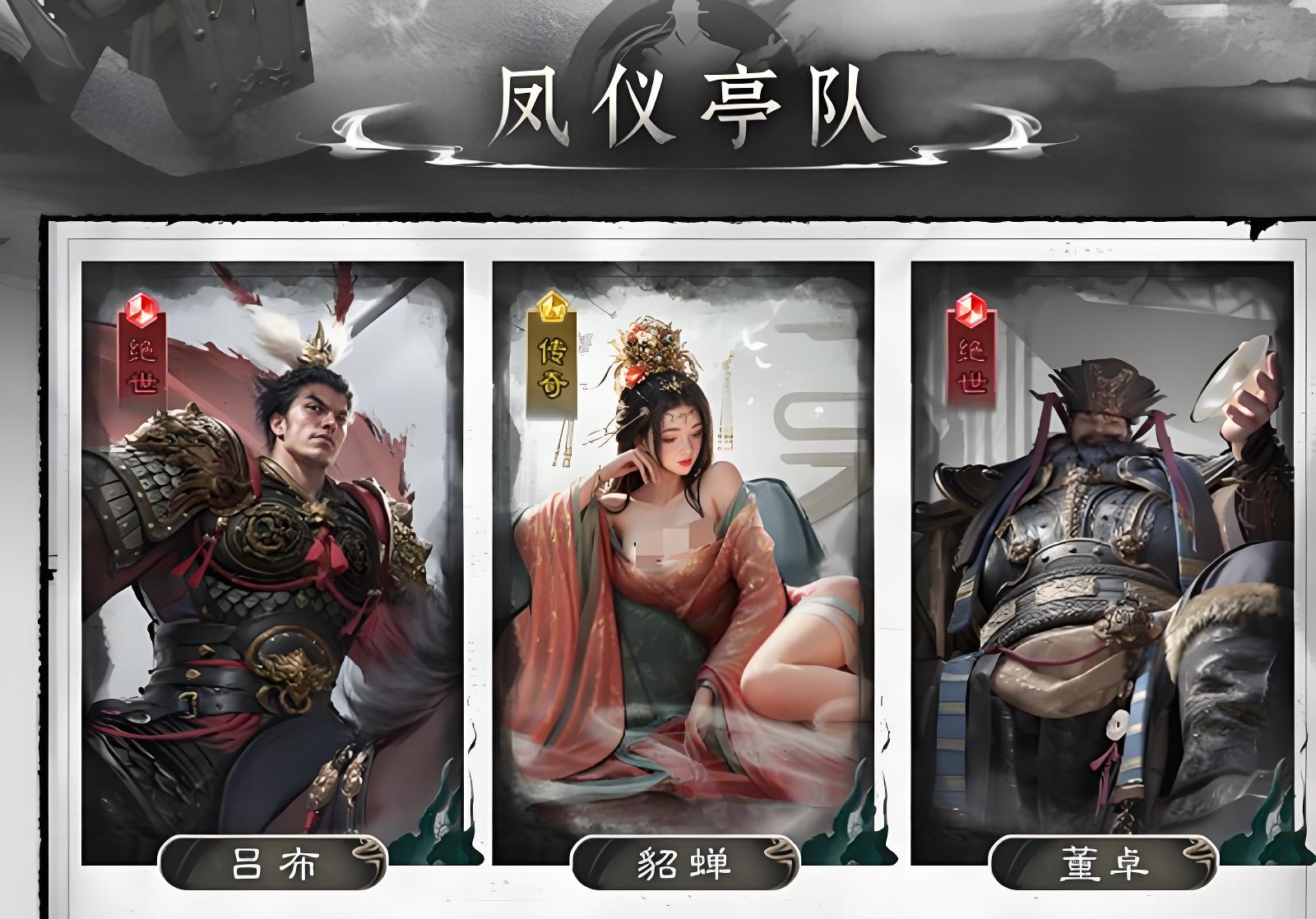 3、鳳儀亭隊適合微氪玩家,由呂布董卓貂蟬組成,呂布吸武力越戰越勇,貂蟬給增益生成護盾,董卓嘲諷吸統帥當前排循環。