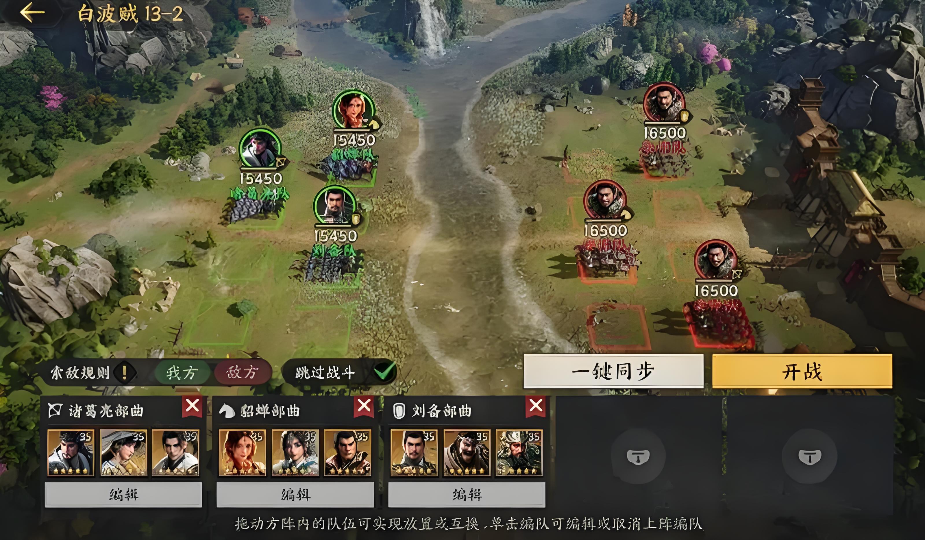 3、前期推薦張飛黃忠蔡文姬組合,張飛嘲諷吸引火力黃忠輸出蔡文姬治療,張飛未解鎖可用關興替代但戰損會相對更高些。