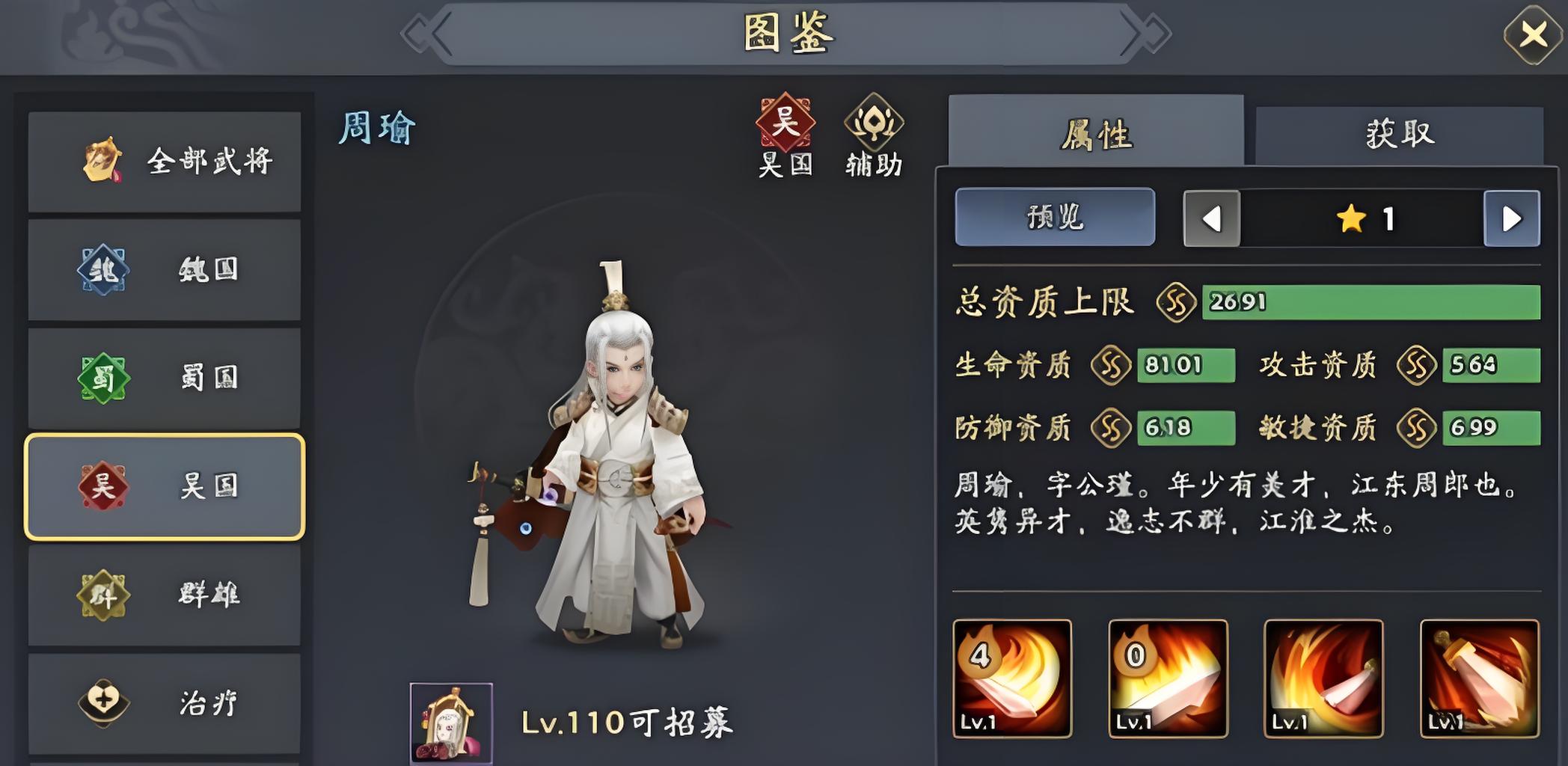 三國志異聞錄里周瑜是吳國關鍵防御型輔助武將,等級110可招募,總資質上限2691,生命與防御資質表現突出,能給隊友提供護盾、削弱敵方防御還具備反傷能力。本文將從他定位、技能機制、培養方向等方面展開,幫助玩家了解強度與使用方式,以便更好搭配陣容發揮其作用。
