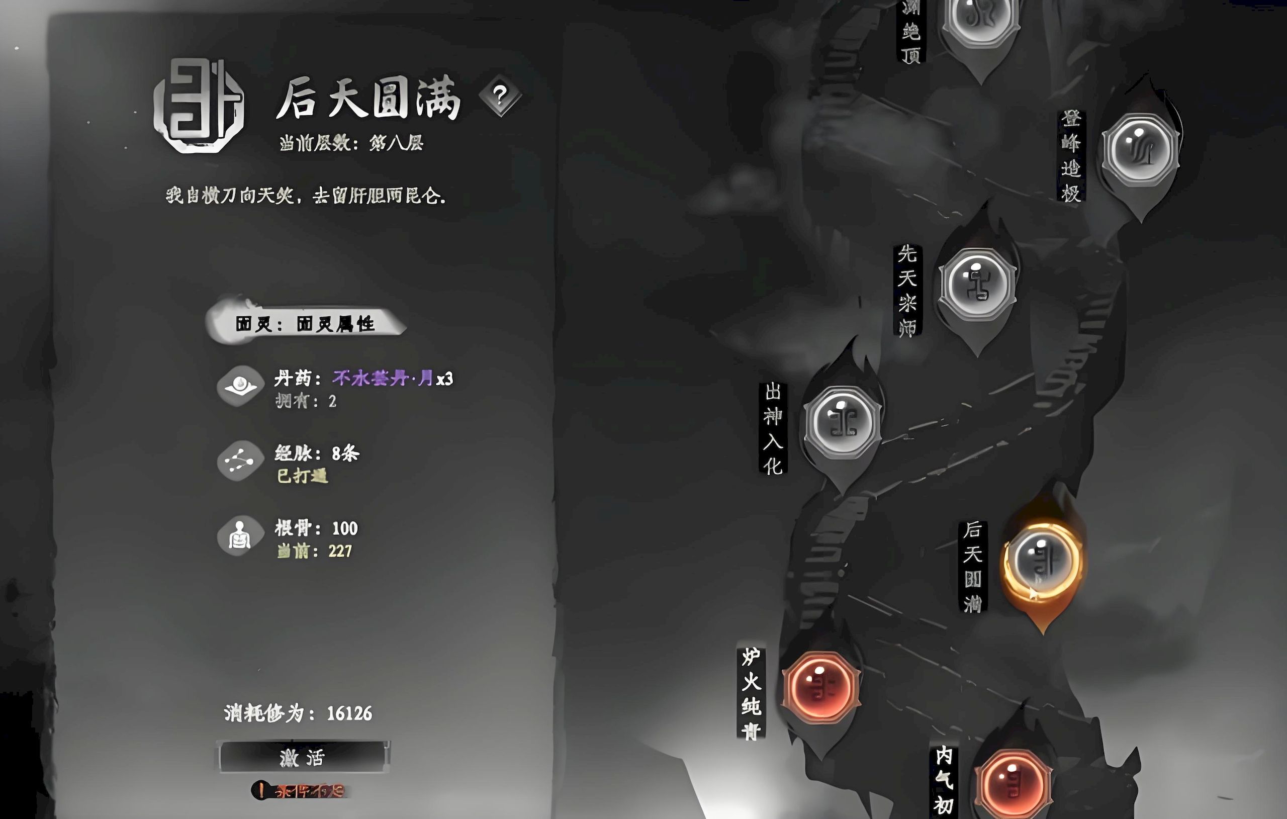 5、借助讀檔機制反復刷取踢館獎勵,能在短時間內集齊3顆不水蕓丹月,滿足覺醒第八層境界的突破條件,確保角色成長節奏不受阻。