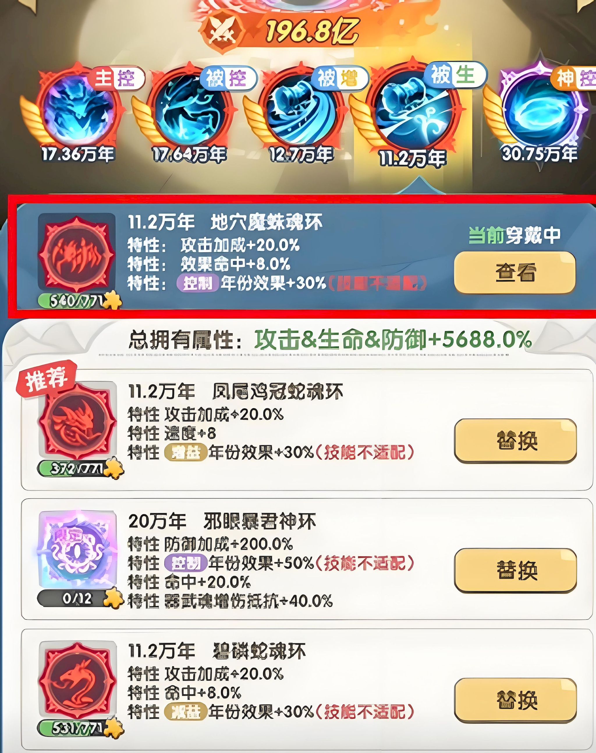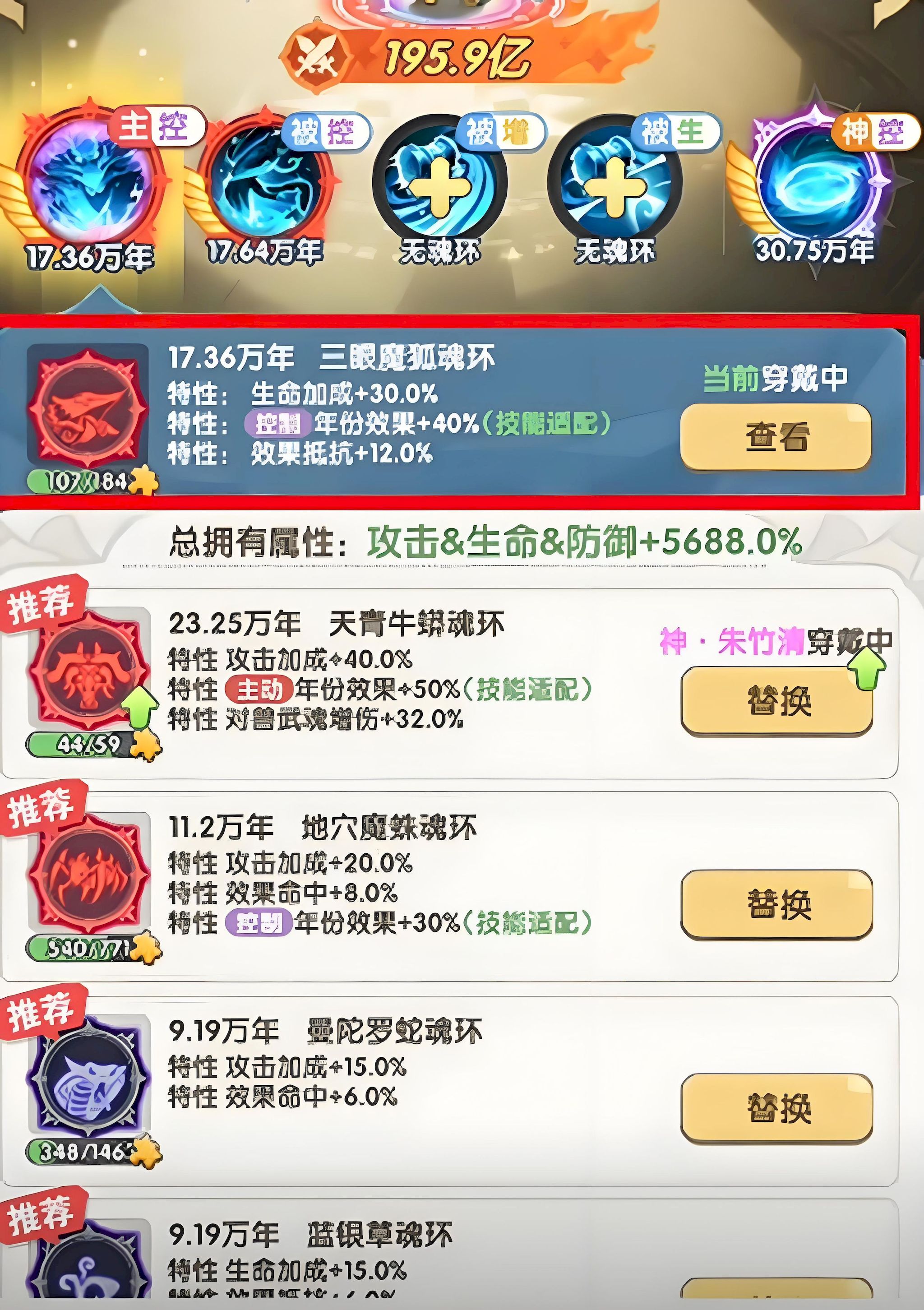 1、第一技能推薦固定搭配三眼魔狐魂環,控場效果穩定且能有效限制敵方核心輸出角色,建議優先配置十萬年品質,確保命中率與控制時長達到最優。
