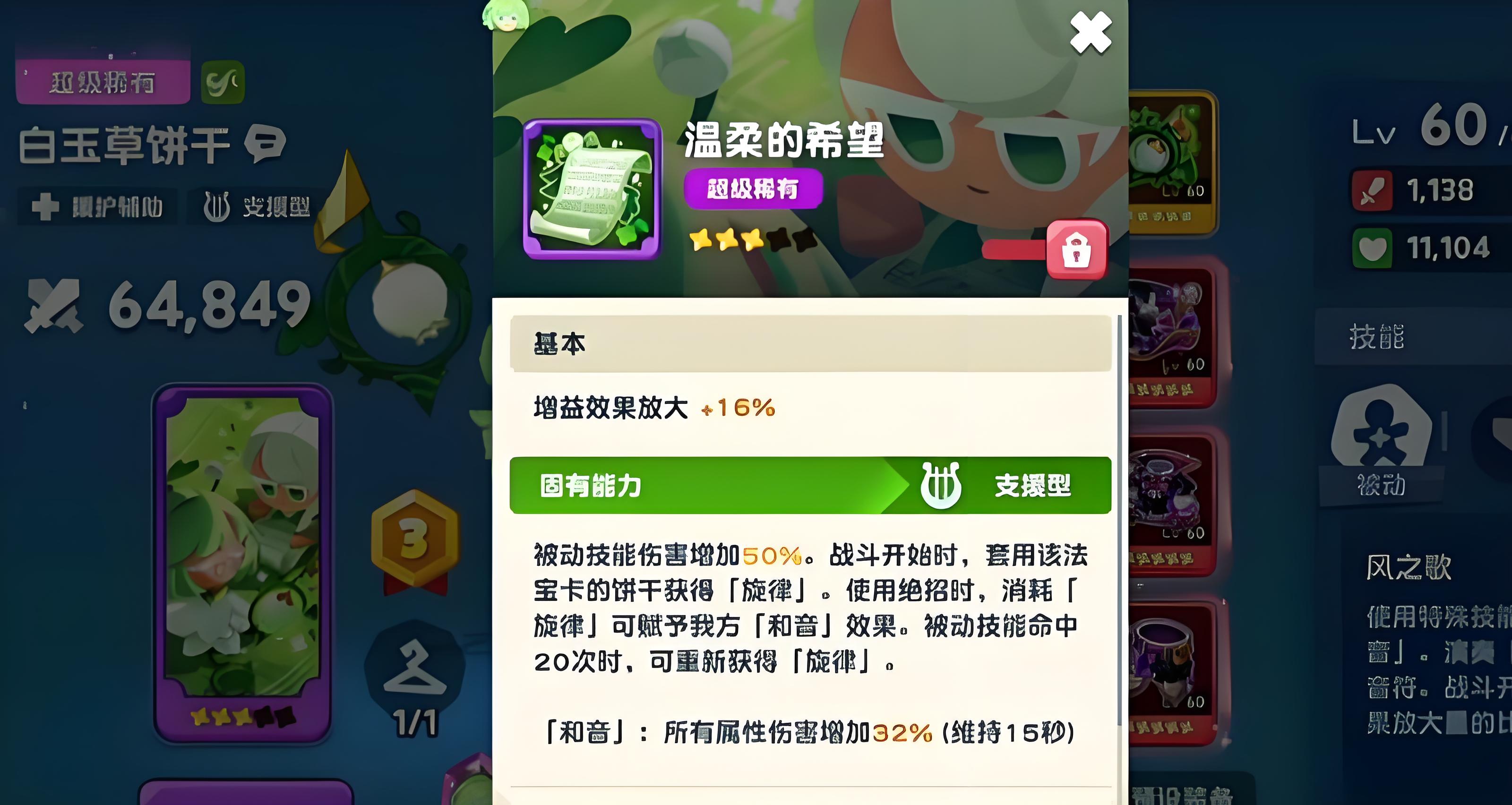 3、法寶卡優先選溫柔的希望,提升被動傷害50%且開局贈予旋律,絕招消耗旋律給全隊32%全屬性傷害增益,配合機制多次觸發增強爆發。