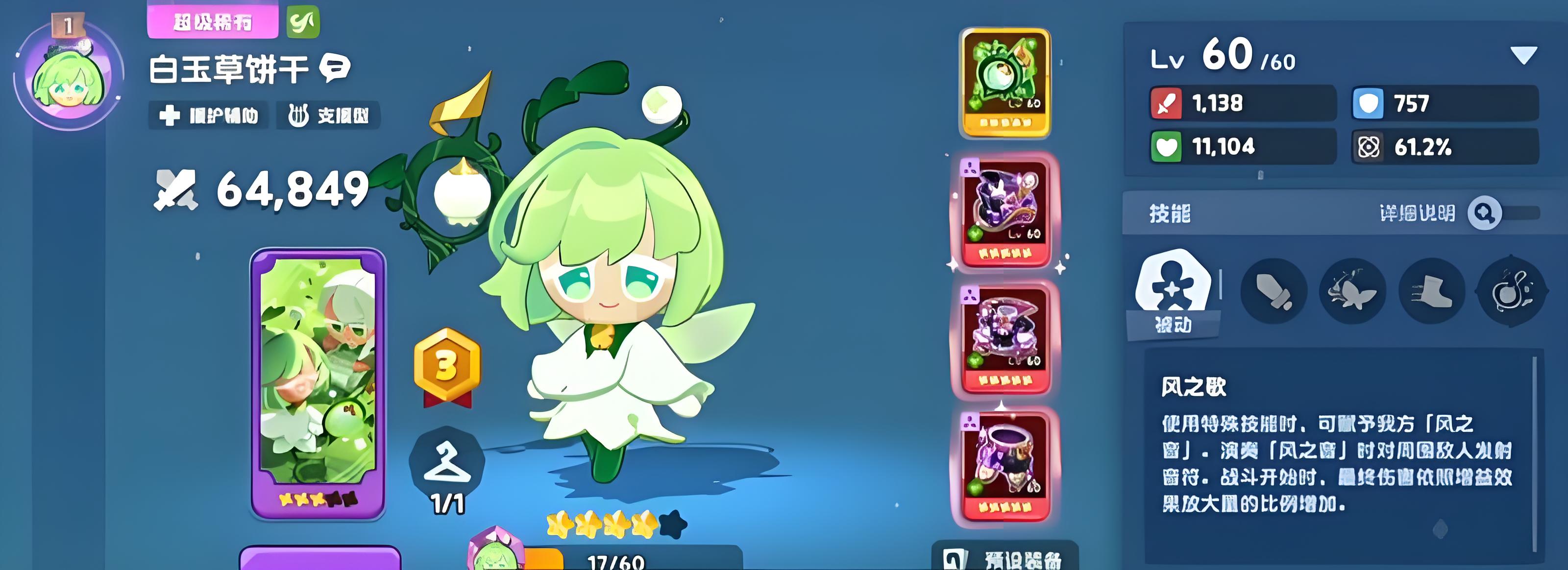 餅干人聯盟白玉草餅干是外服上線后熱度極高的超級稀有角色,憑借輔助與輸出雙重特性成為陣容構建焦點,不少玩家糾結是否投入資源培養,想清晰了解其實戰強度與搭配方式。本文將從基礎屬性、核心技能、法寶卡選擇及陣容適配等方面展開,幫助玩家全面認識該角色并確定培養優先級。