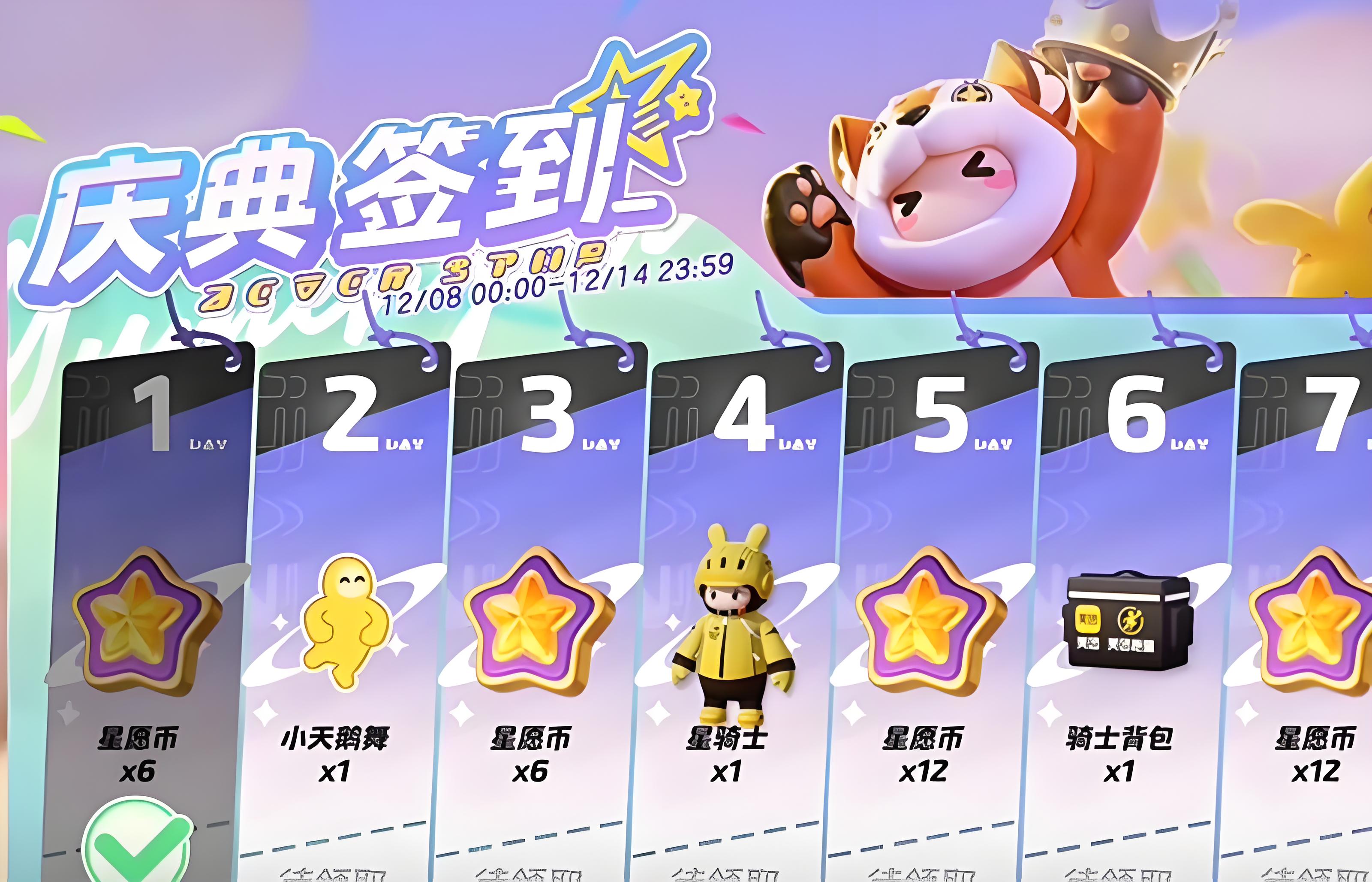 3、進入活動頁面后需連續簽到四天,完成四天簽到任務即可直接領取美團聯名皮膚星騎士,無需額外完成其他復雜任務。