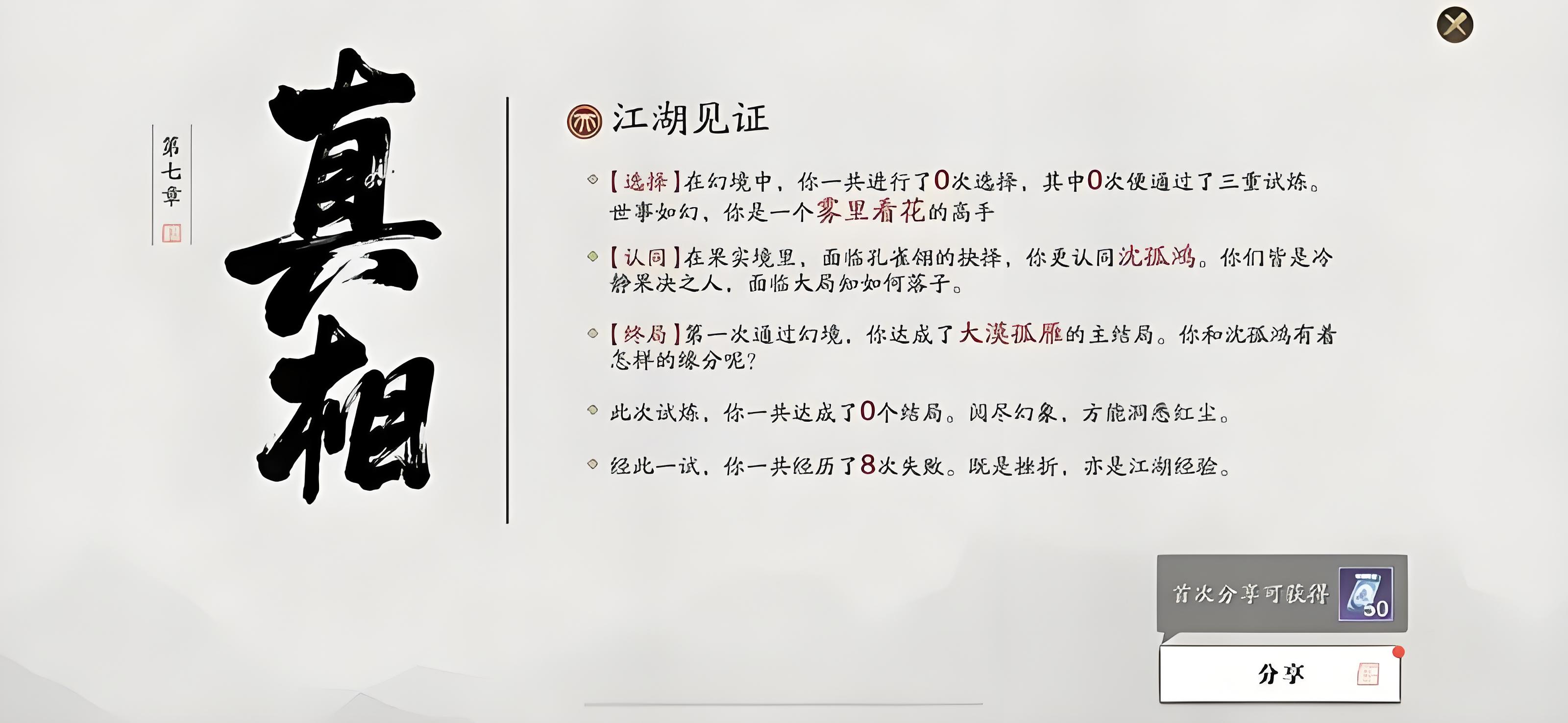1、開啟需先滿足第一個前置條件,即完成第七章主線任務,該章節需玩家等級達到65級才能開放,完成后可直接跳過劇情解鎖結局。