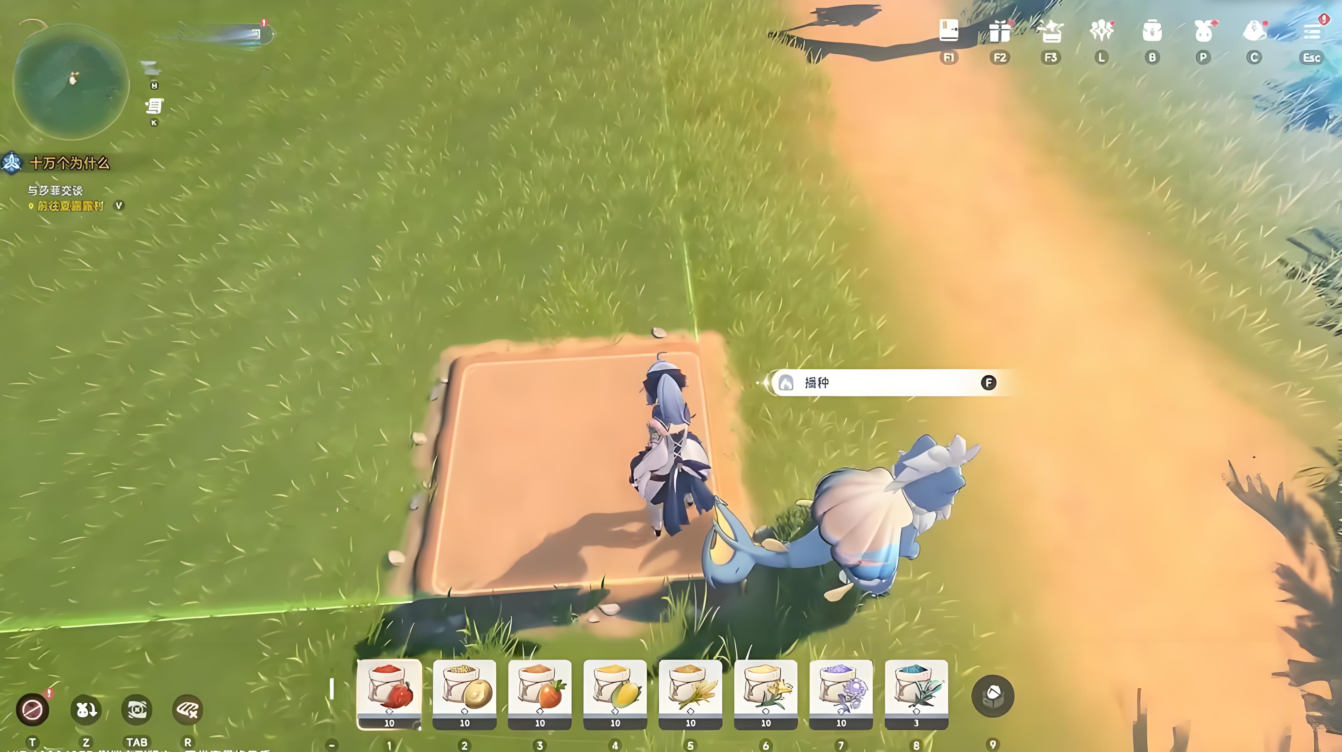 1、種子可通過野外探索收集,采集草叢擊敗星蟲或完成任務都有機會獲得,找荒地用基礎工具開墾后播撒種子并澆水維持水分值。