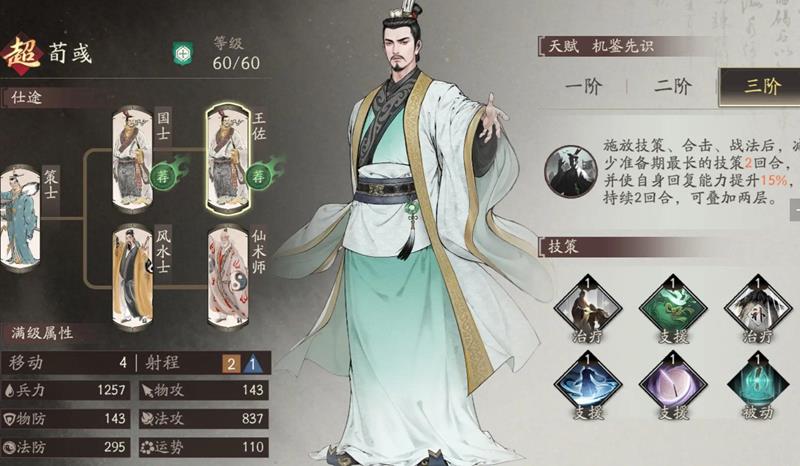 3、荀彧是前期必練治療輔助,當世子房技能給隊友加法攻50%護盾還增戰意,四命后解鎖群體減傷增強容錯率。