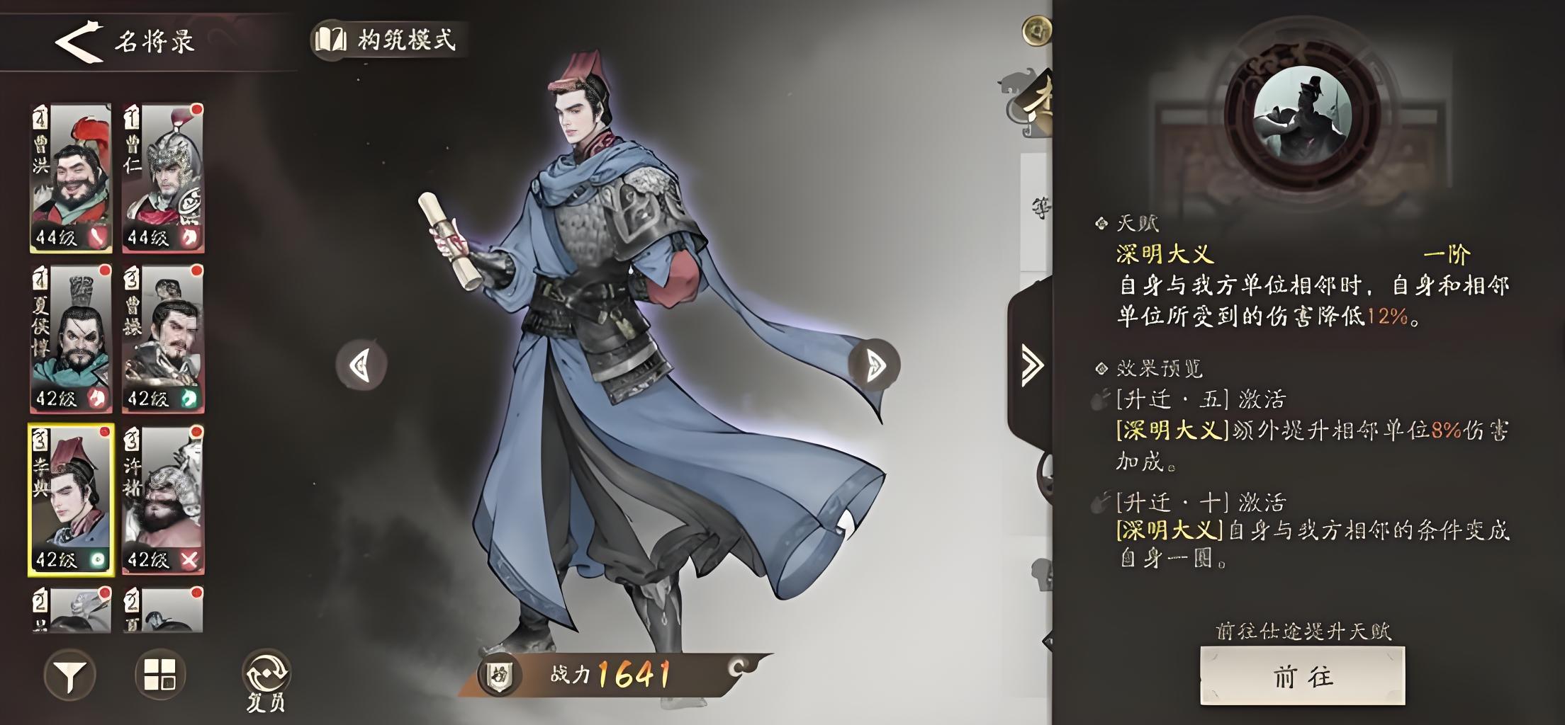 2、核心技能深明大義觸發頻率極高幾乎每回合生效,隨升遷等級強化,五階額外提供傷害加成十階擴大影響范圍。