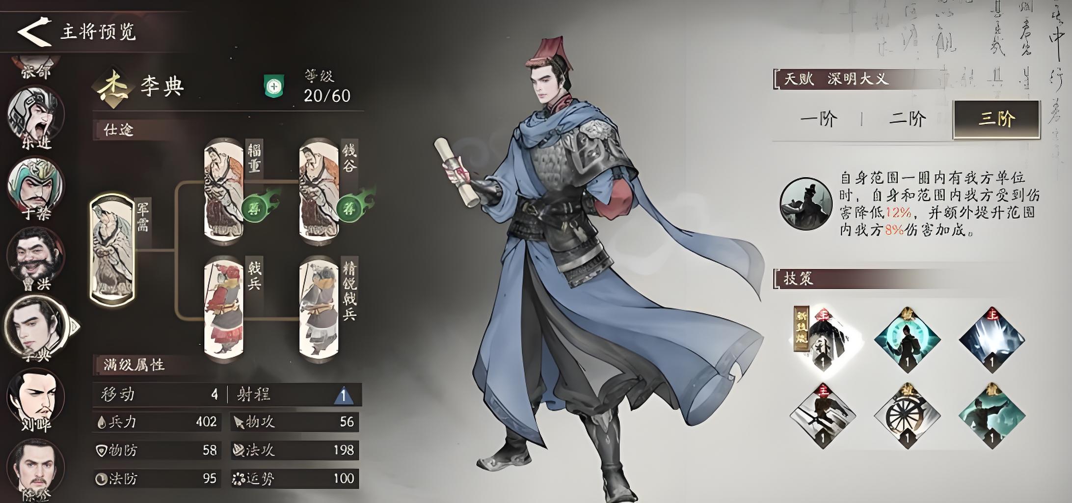 三國望神州李典作為魏國陣容中的重要輔助武將,其強度與使用技巧常被玩家關注。了解他的核心定位技能效果養成策略及陣容搭配,能幫助玩家在開荒到后期戰斗中充分發揮其價值。本文將圍繞這些關鍵內容展開,為玩家提供全面實用的攻略,助力合理運用該武將提升團隊整體作戰水平。