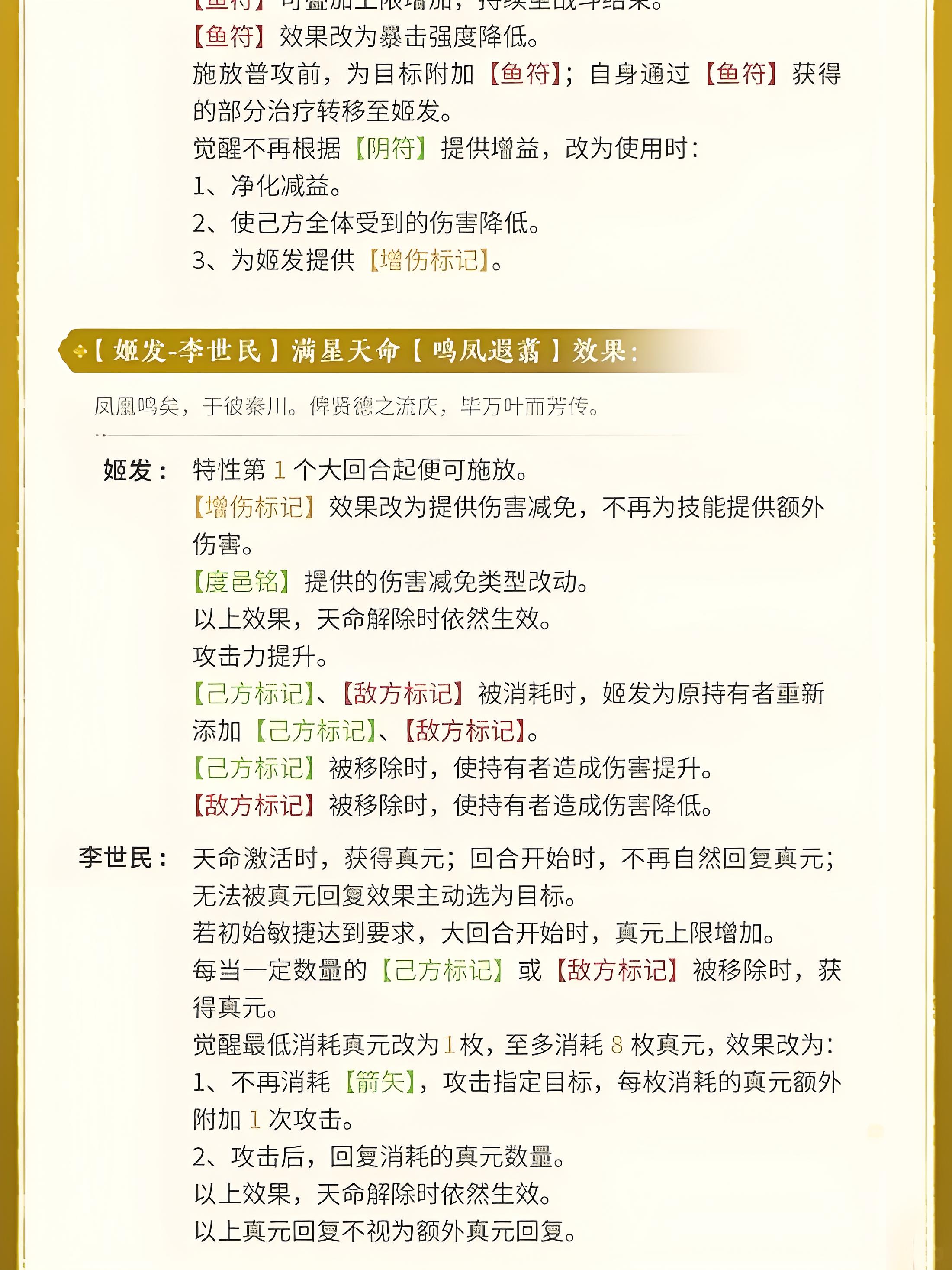 3、己方標記持有者放技能,目標為敵方標記者或姬發時,消耗對應標記,兩種情況都能讓姬發獲得增傷標記。