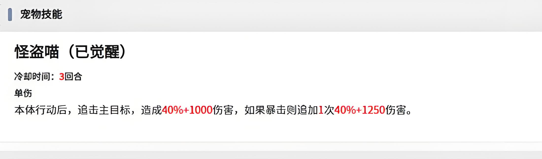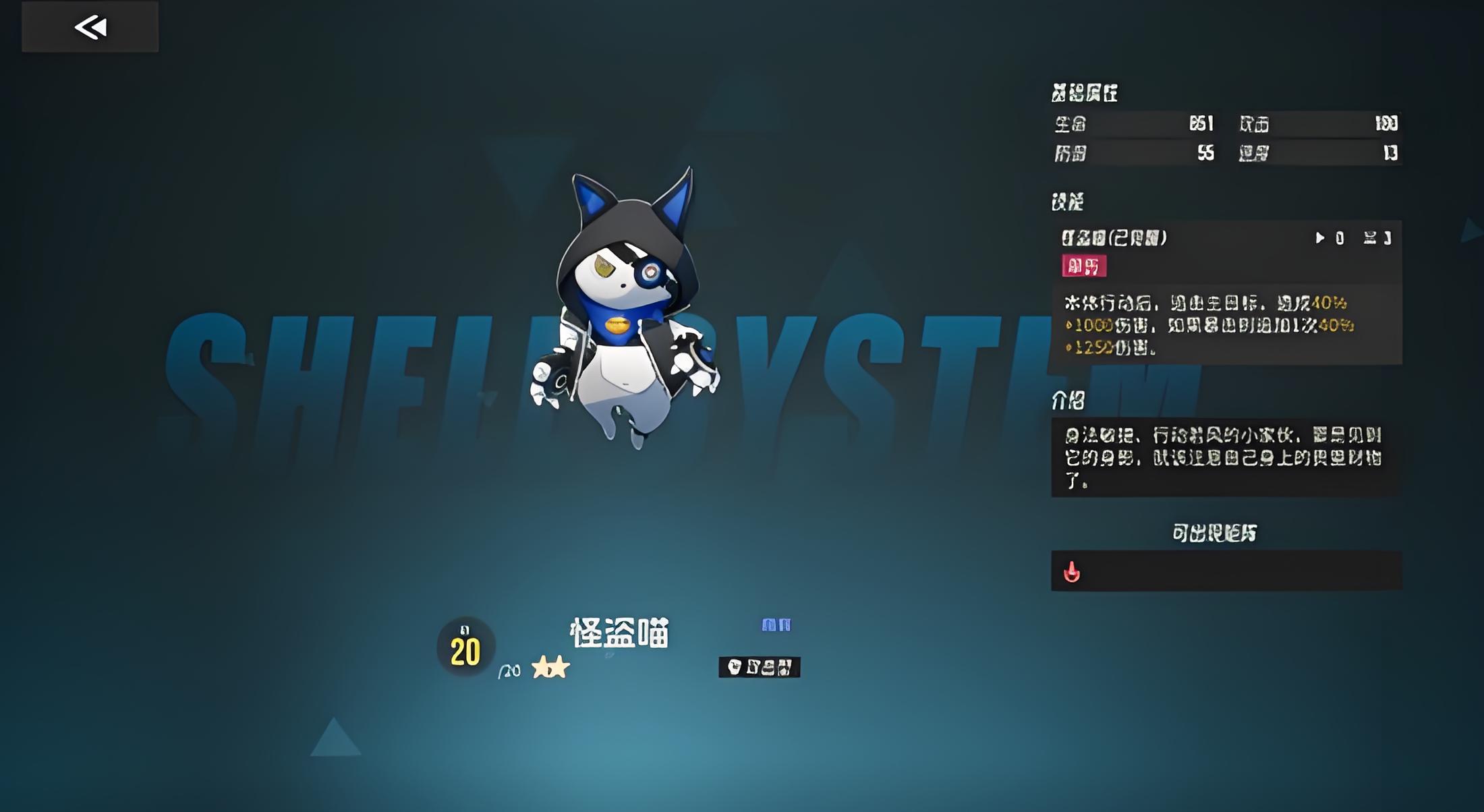 1、怪盜喵定位輔助型智殼,基礎屬性無突出點,核心能力是行動后追擊主目標造成傷害,暴擊時還會追加一次傷害。