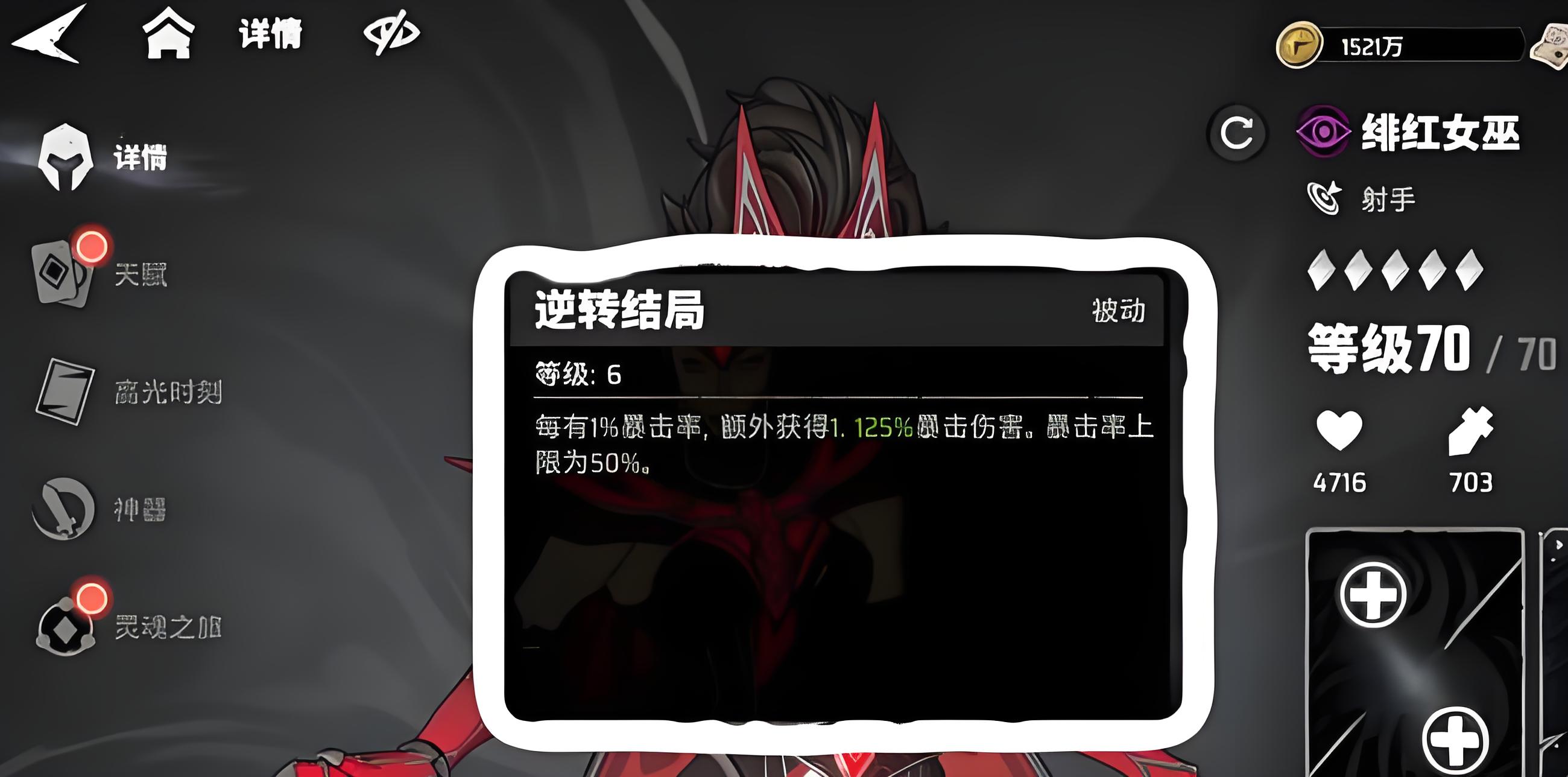 1、緋紅女巫被動有獨特暴擊成長機制,暴擊率按比例加暴擊傷害且設上限,疊加機制提輸出效率。