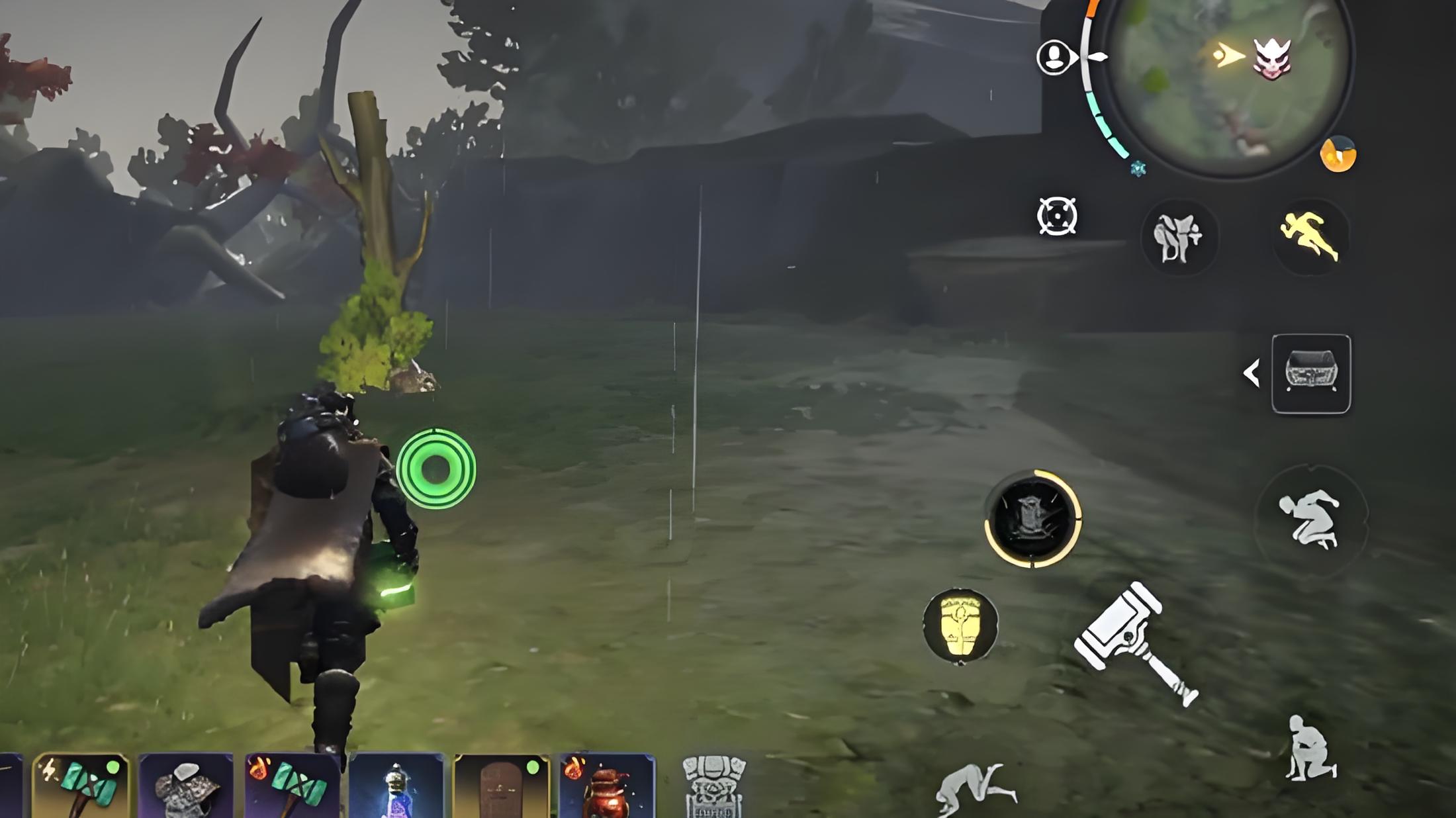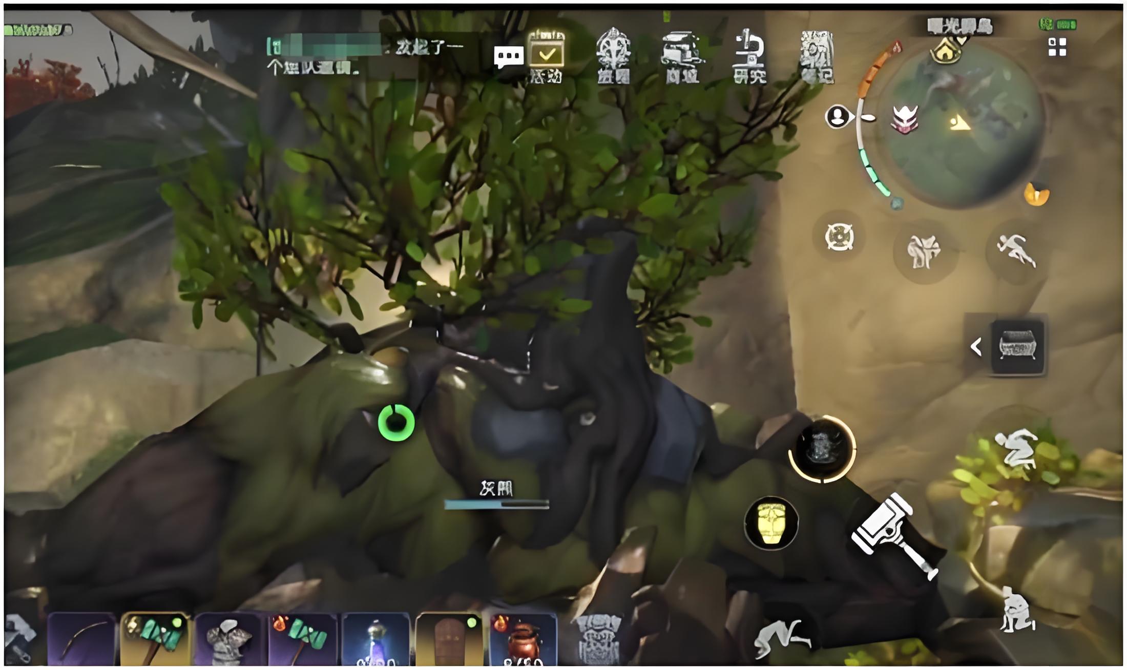 1、喚雨者大樹潛伏在泥土下呈枯萎樹干狀,玩家靠近其區域會觸發戰斗,初始用樹干大范圍攻擊,推薦弓箭遠程消耗或鐵錘在安全時近戰攻擊。