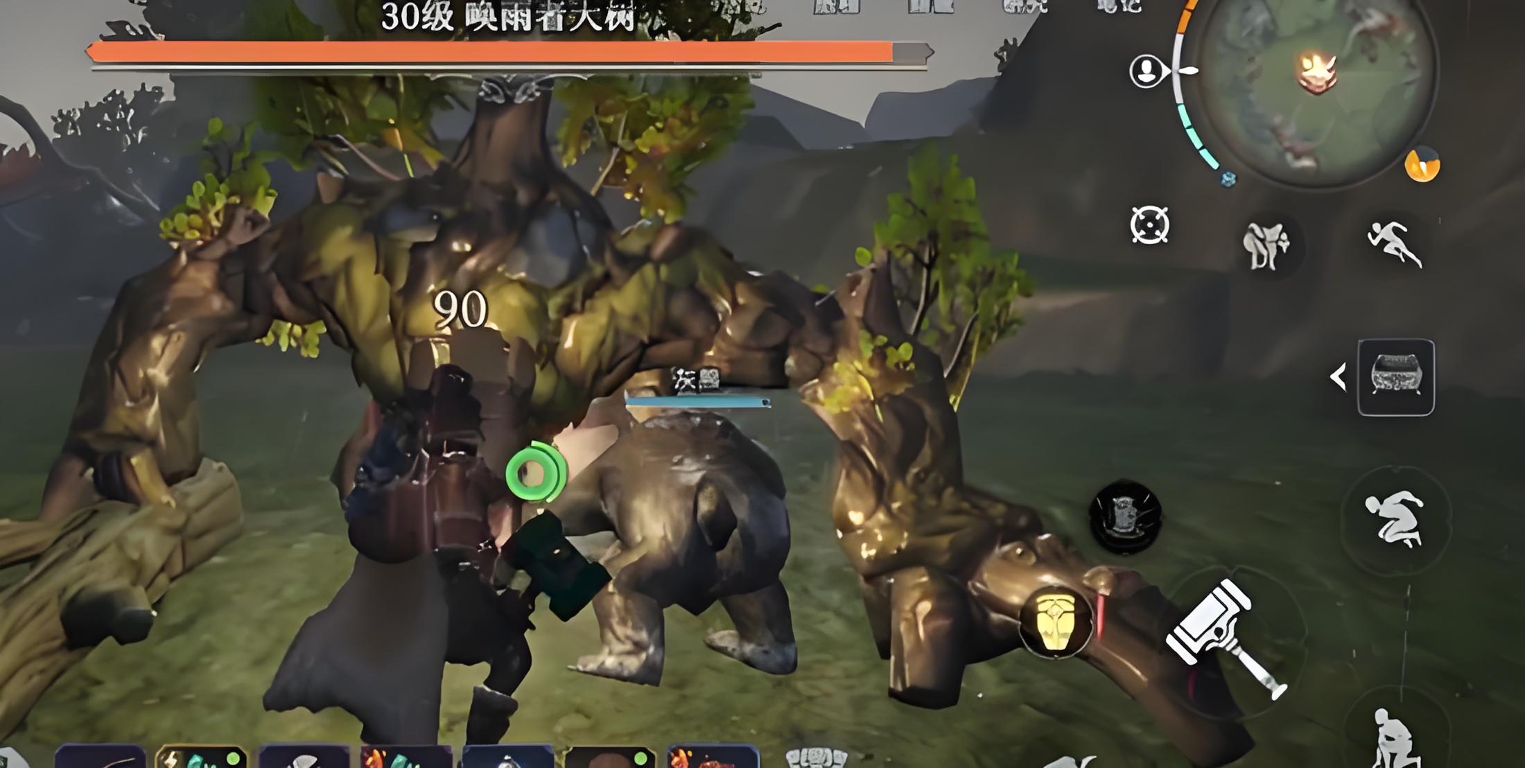 4、單刷喚雨者大樹要帶夠治療藥水,備耐久高的裝備還可召喚寵物牽制,用弓箭拉扯輸出,首領硬直時換鐵錘打爆發,靈活走位找反擊時機。