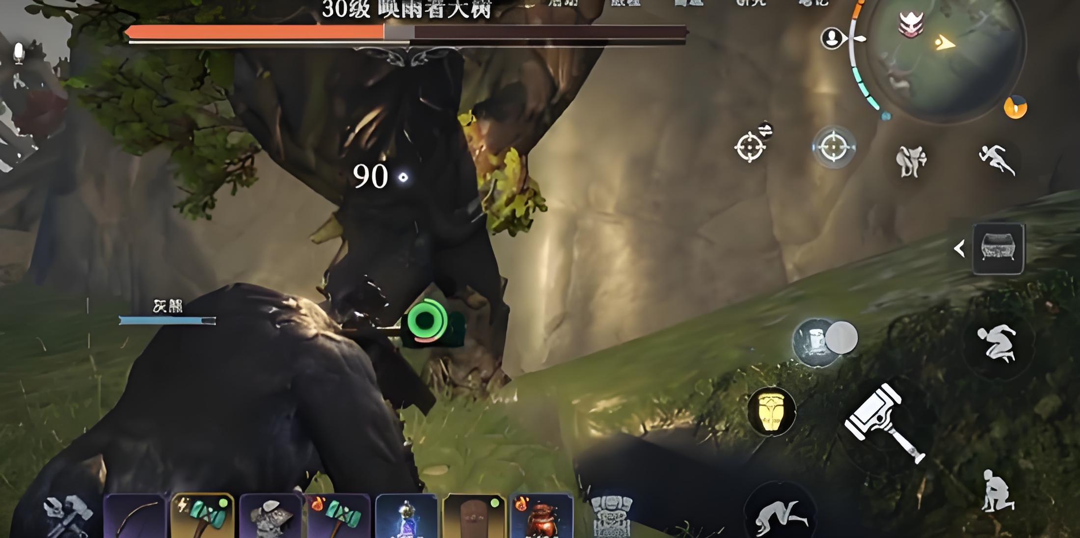 2、喚雨者大樹會發動跳躍踩踏攻擊,躍起后砸向地面造成大范圍傷害,看到起跳動作需立即側翻躲開,熟悉節奏后可提前預判走位減少傷害。
