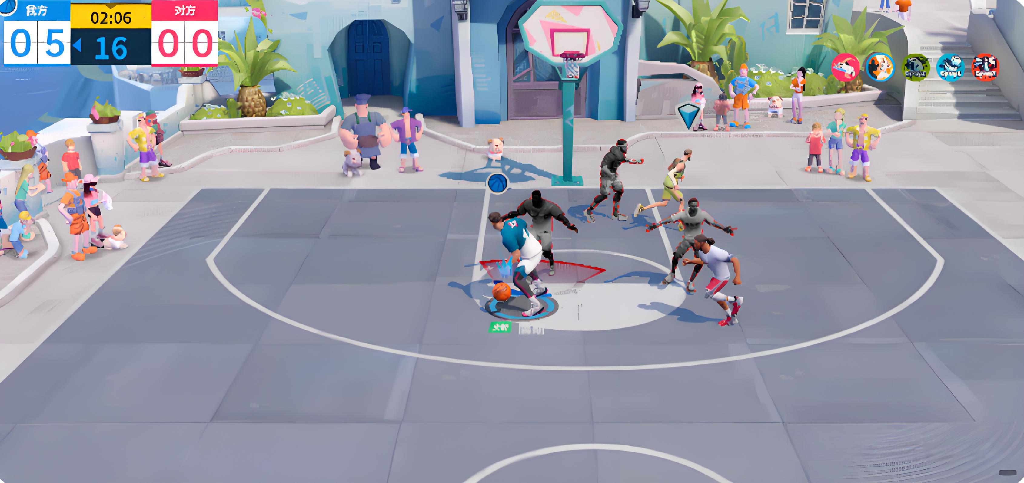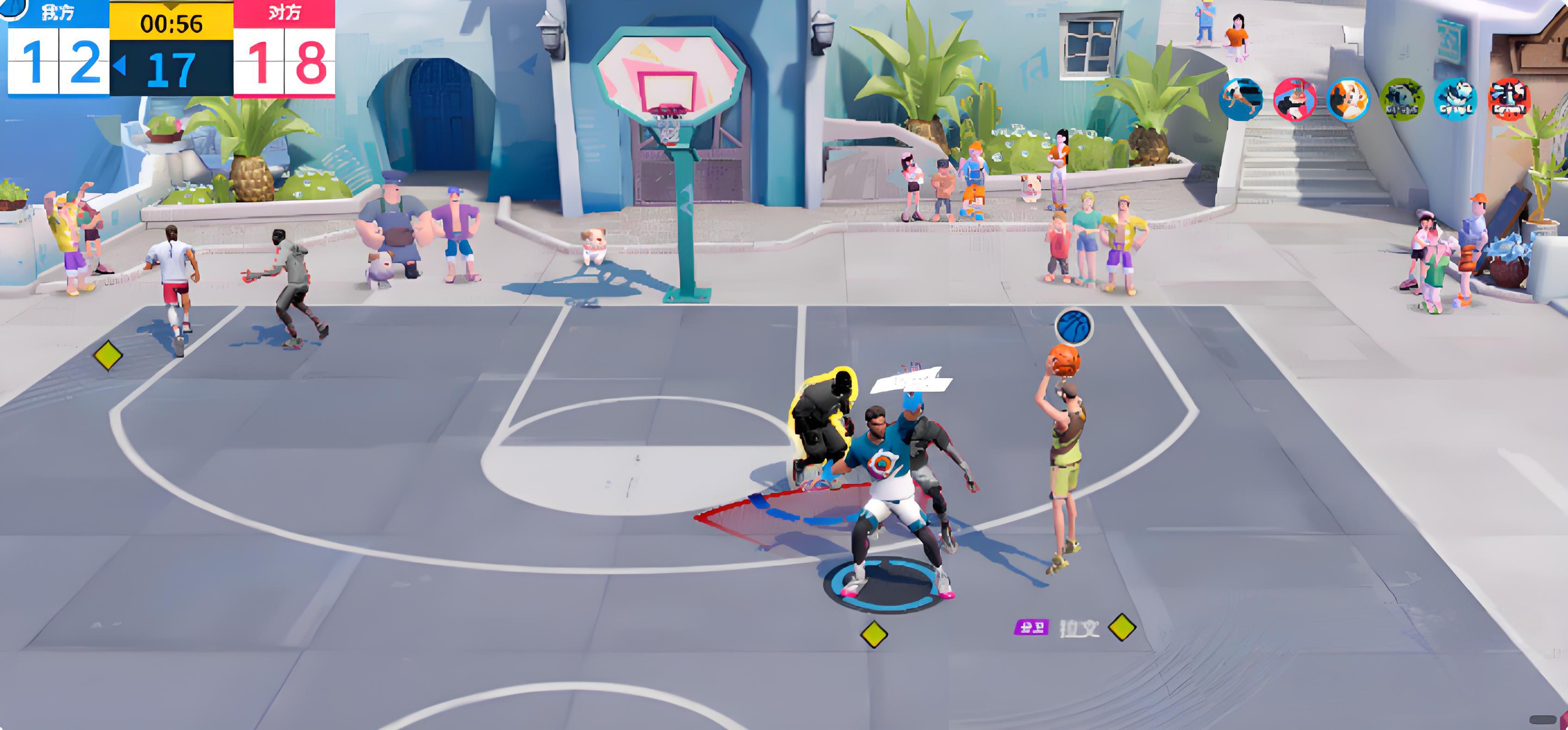 4、大招釋放后球場變三分投球現場實現五點開花,空位命中率與抗干擾能力大幅增加,開啟強勢輸出階段。