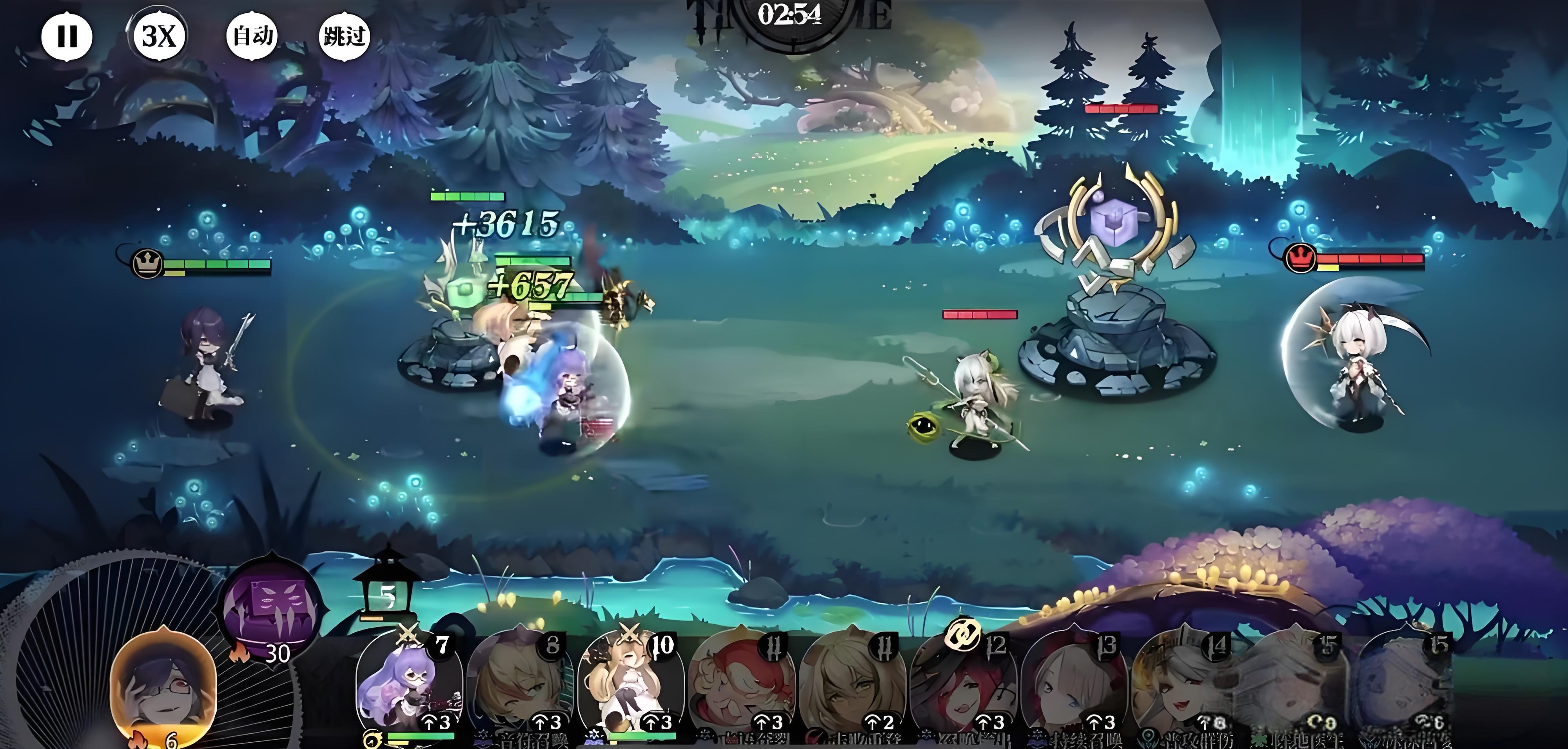 4、陣容搭配以琳為主力輸出,適合召喚流慢節奏戰斗,搭配南希得群體傷害致盲,還能給我方殘血單位提閃避增生存。
