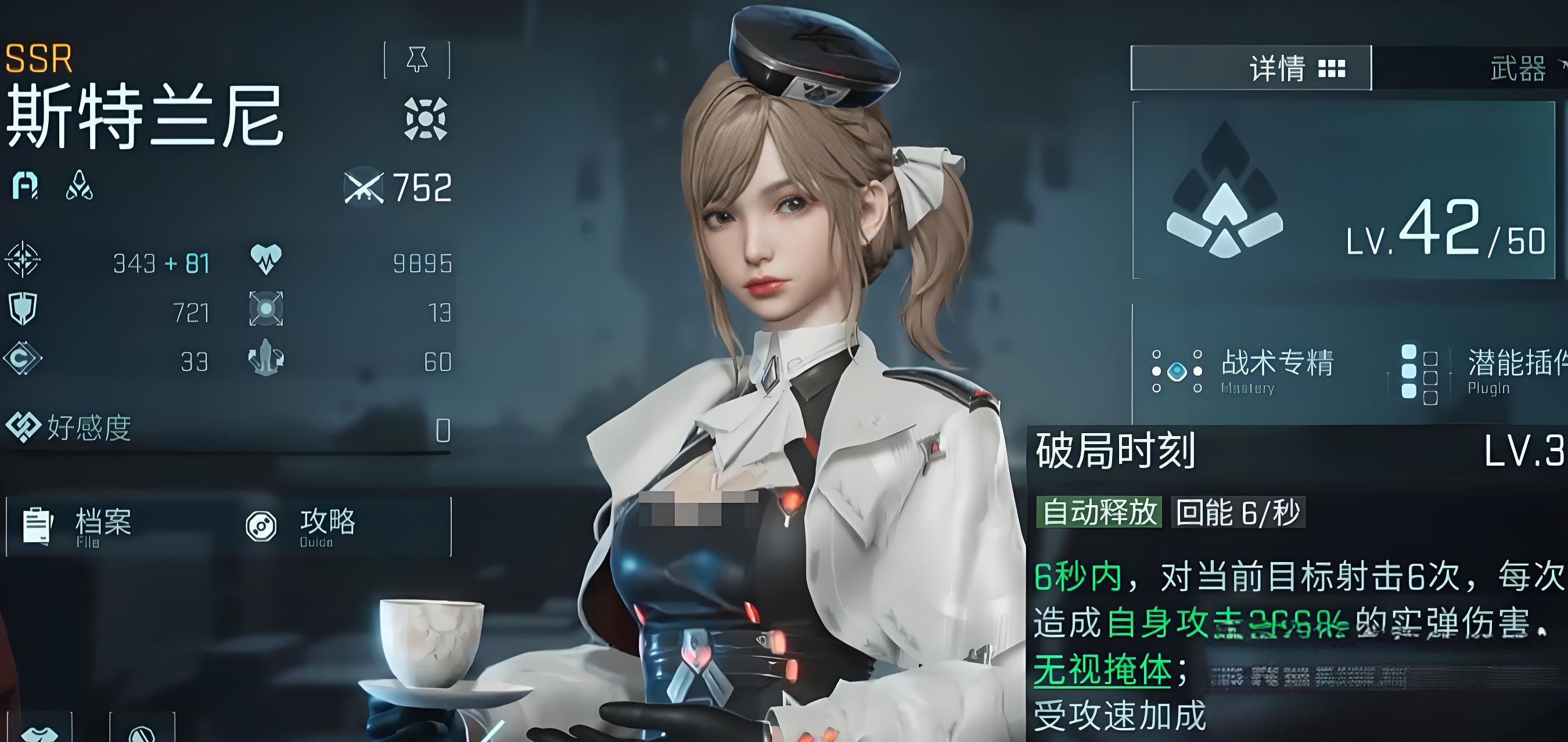 1、大招打壓吸籌對射程內敵人隨機攻擊四次優先不同目標,造成自身攻擊312%電磁傷害且無視掩體,初始能量40釋放效率高適合循環隊伍。